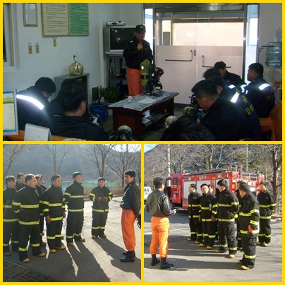 삼척소방서(서장 정경남)는 최근 노래방, 유흥주점 등 지하층 화재와 관련 인명피해가 예상되는 바 안전사고 방지 및 공기호흡기 사용법, 소방차량장비조작훈련 등 순회 교육을 실시 하고 있으며, 특히 현장에서의 직원들 개인장비 안전사고에 유의할 것을 거듭 강조하고 있다