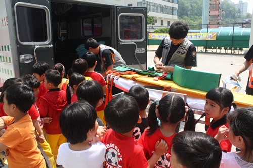 삼척소방서(서장 김상철)는 25일 10시에 누리유치원 원생 53명, 인솔교사 4명을 대상으로 어린이 소방안전교육 및 물소화기 체험, 연기체험, 소방차량 탑승체험을 실시하였다.