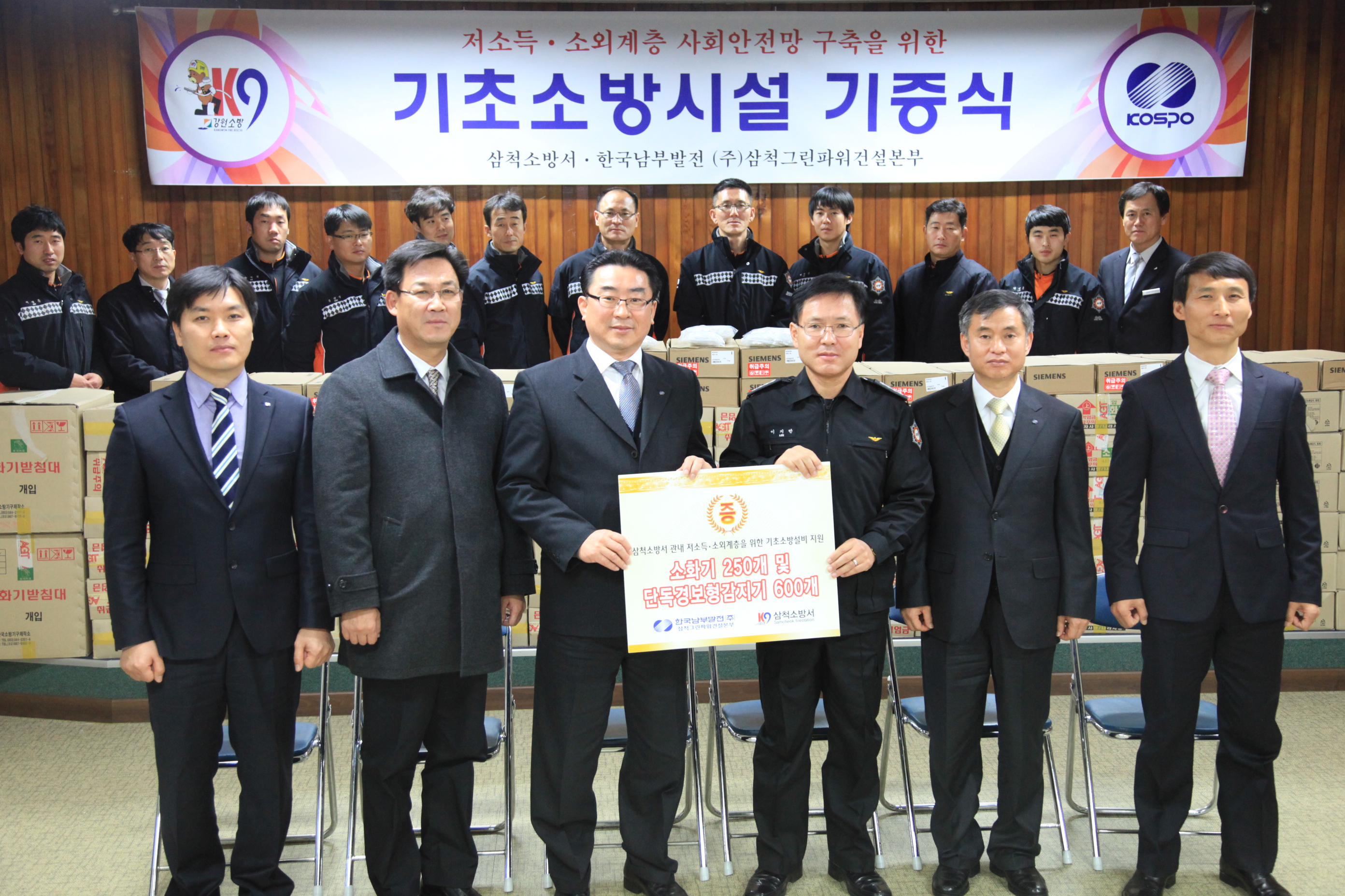 □ 삼척소방서(서장 이지만)는 12월 14일(금) 14시 대회의실에서 한국남부발전(주)(사장 이상호)과 함께 삼척시 관내 저소득 소외계층 기초소방설비 보급에 필요한 기초소방설비(소화기, 단독경보형감지기) 기증행사를 시행하였다.