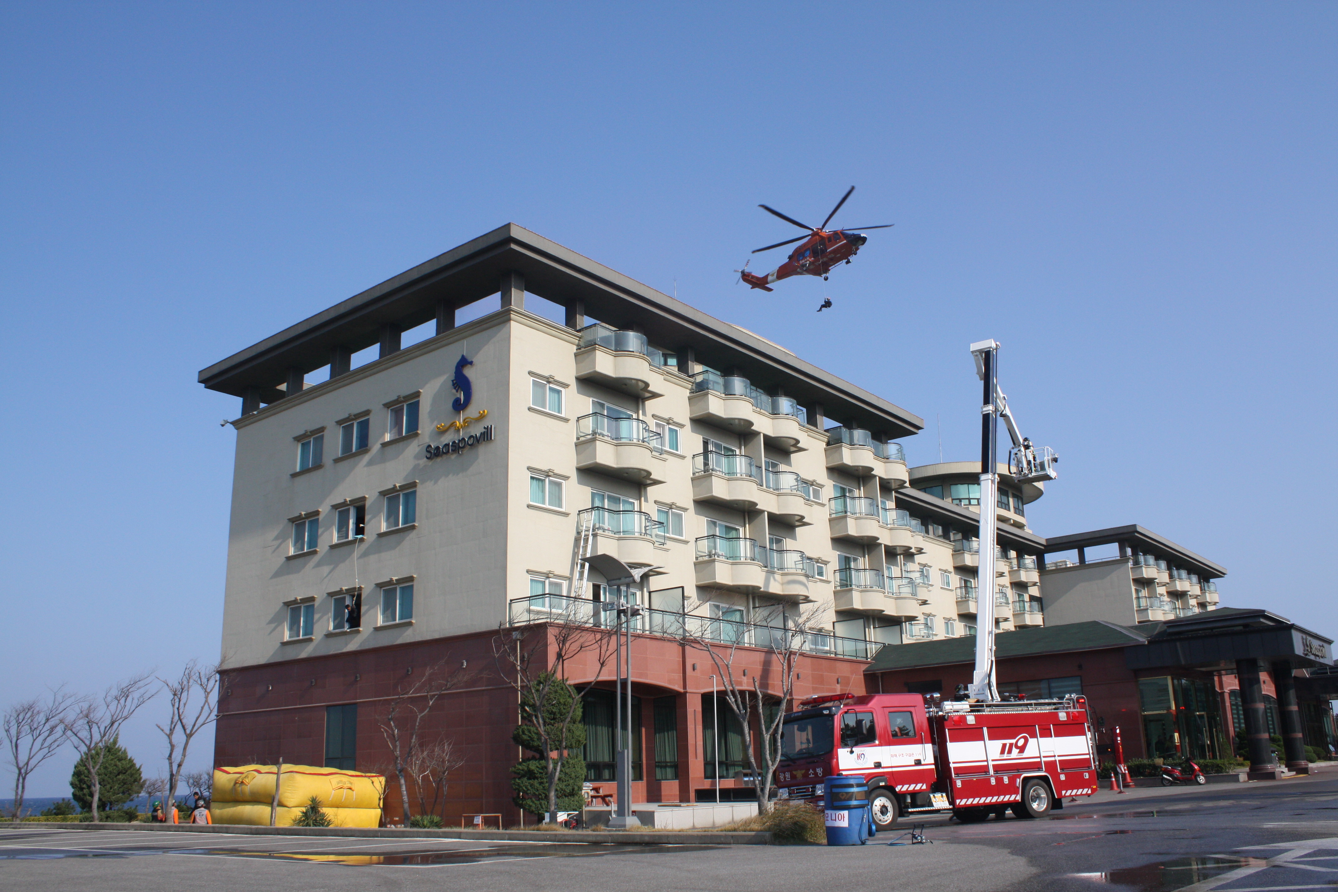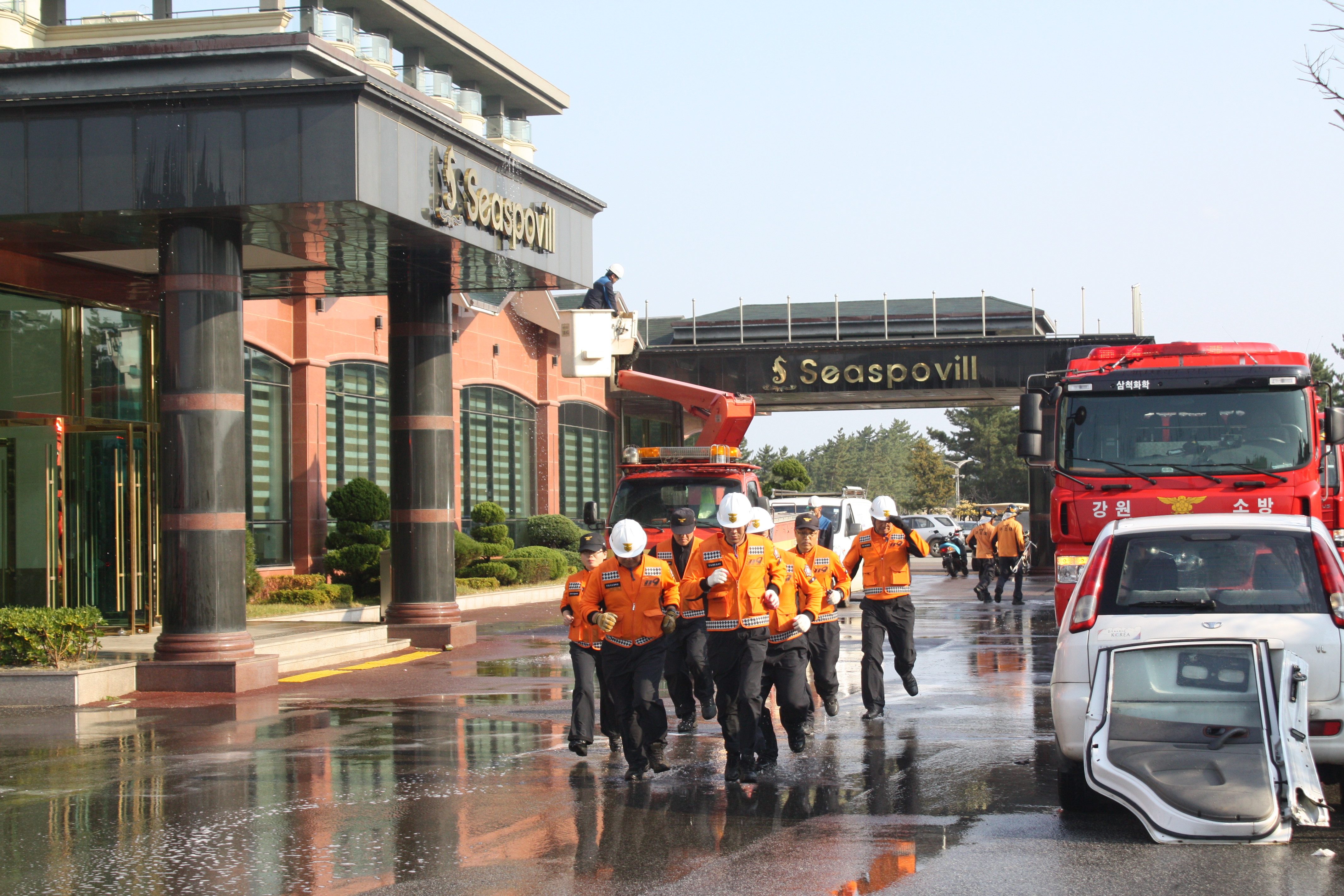 훈련 상황은 씨스포빌 리조트 건물에 대테러 및 유해화학물질 유출 등의 종합 재난 상황으로 건물붕괴 및 대형화재가 발생함을 가정으로 진행됐다.
