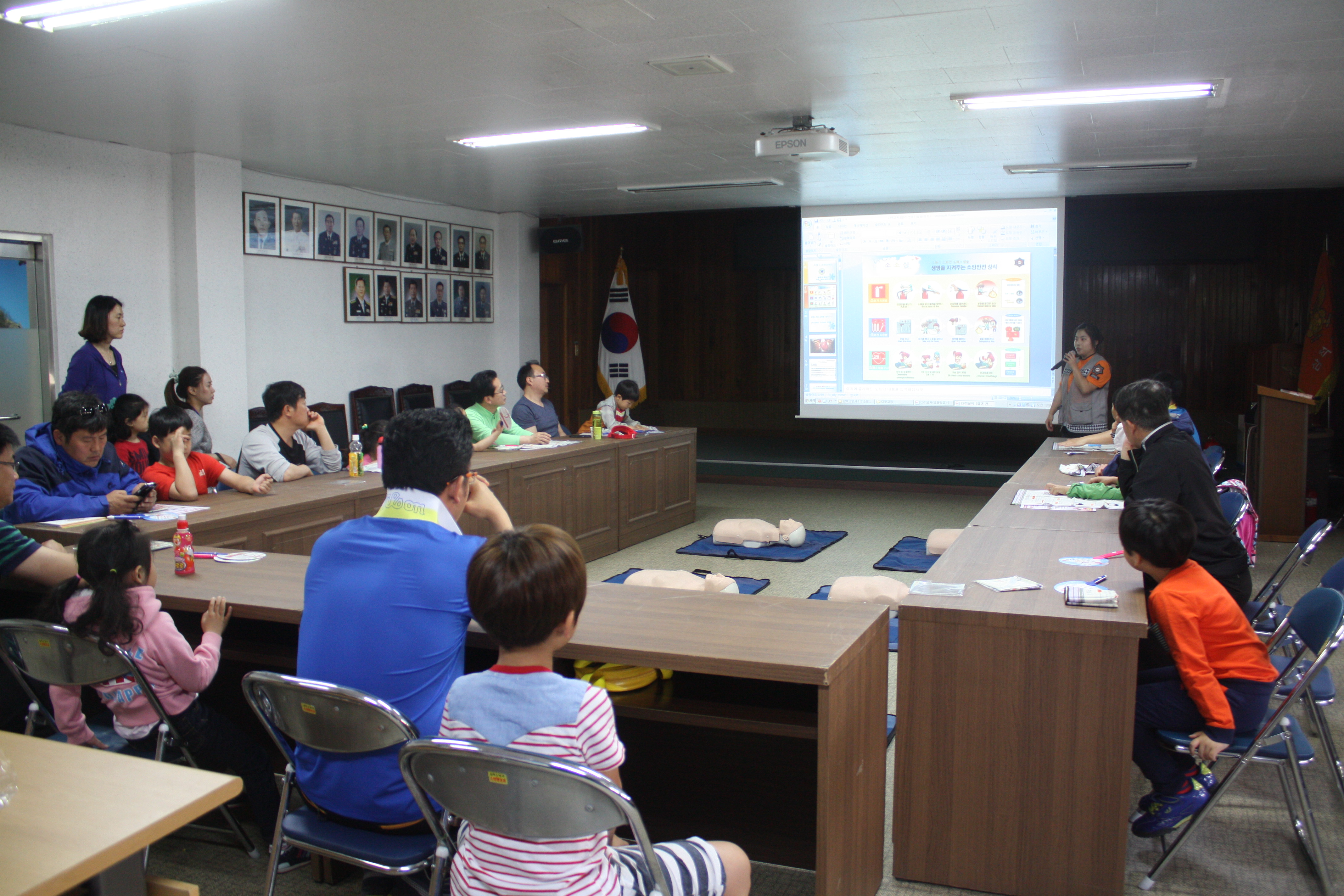 2014년 5월 17일 10시부터 삼척소방서 대회의실에서 건강가정지원센터에서 신청 받은 가족 11쌍(총23명)과함께 아빠와 함께하는 소방안전교육을 실시하였다.