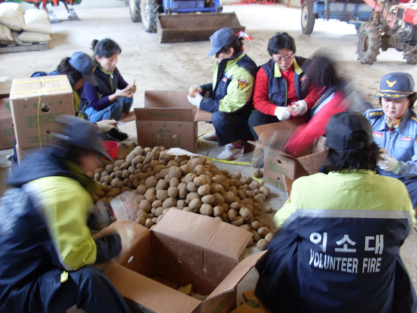강현여성의용소방대 농촌일손돕기 - 감자 씨눈 작업 돕기