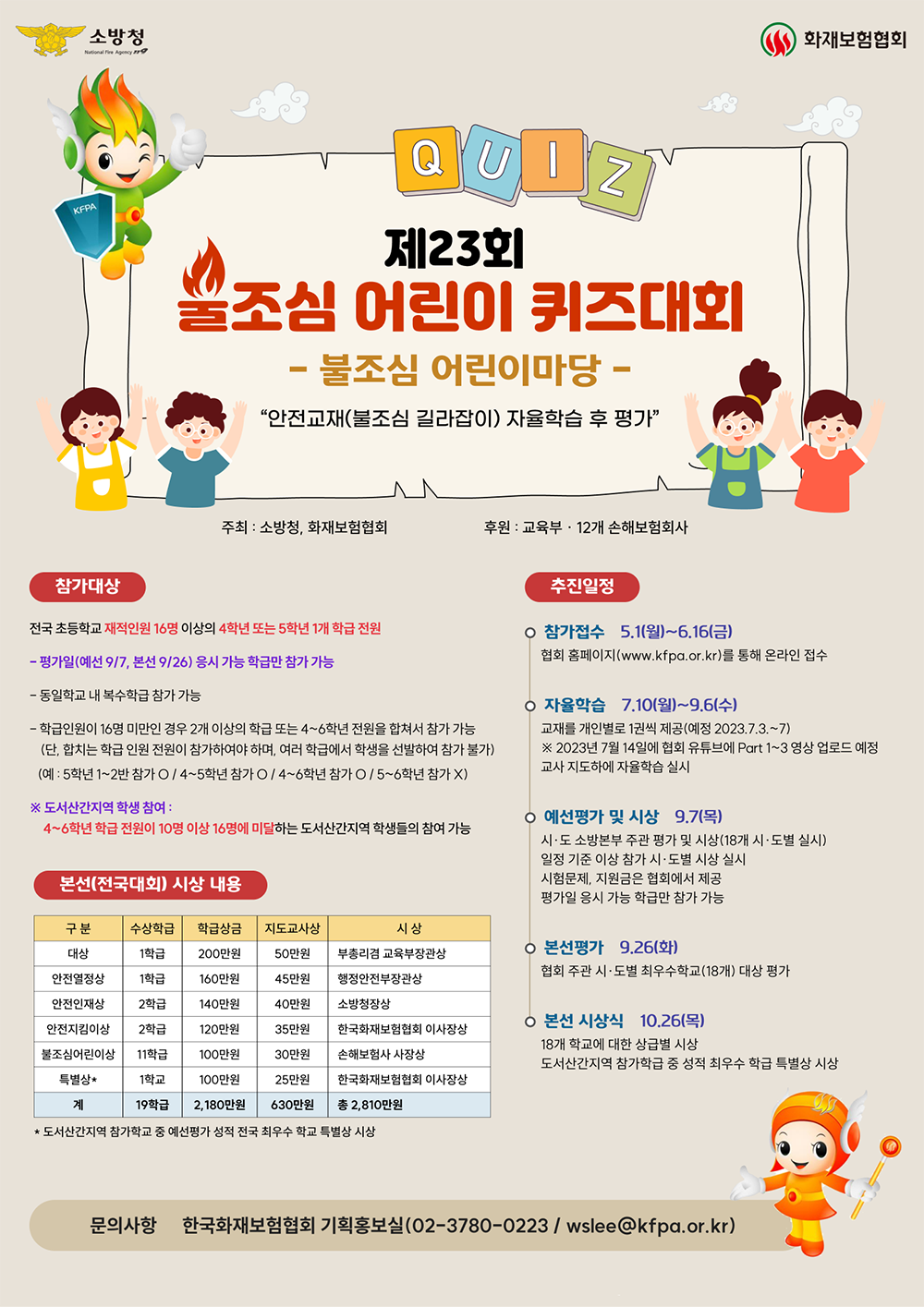 제23회 불조심 어린이 마당(퀴즈대회) 행사 참석 안내