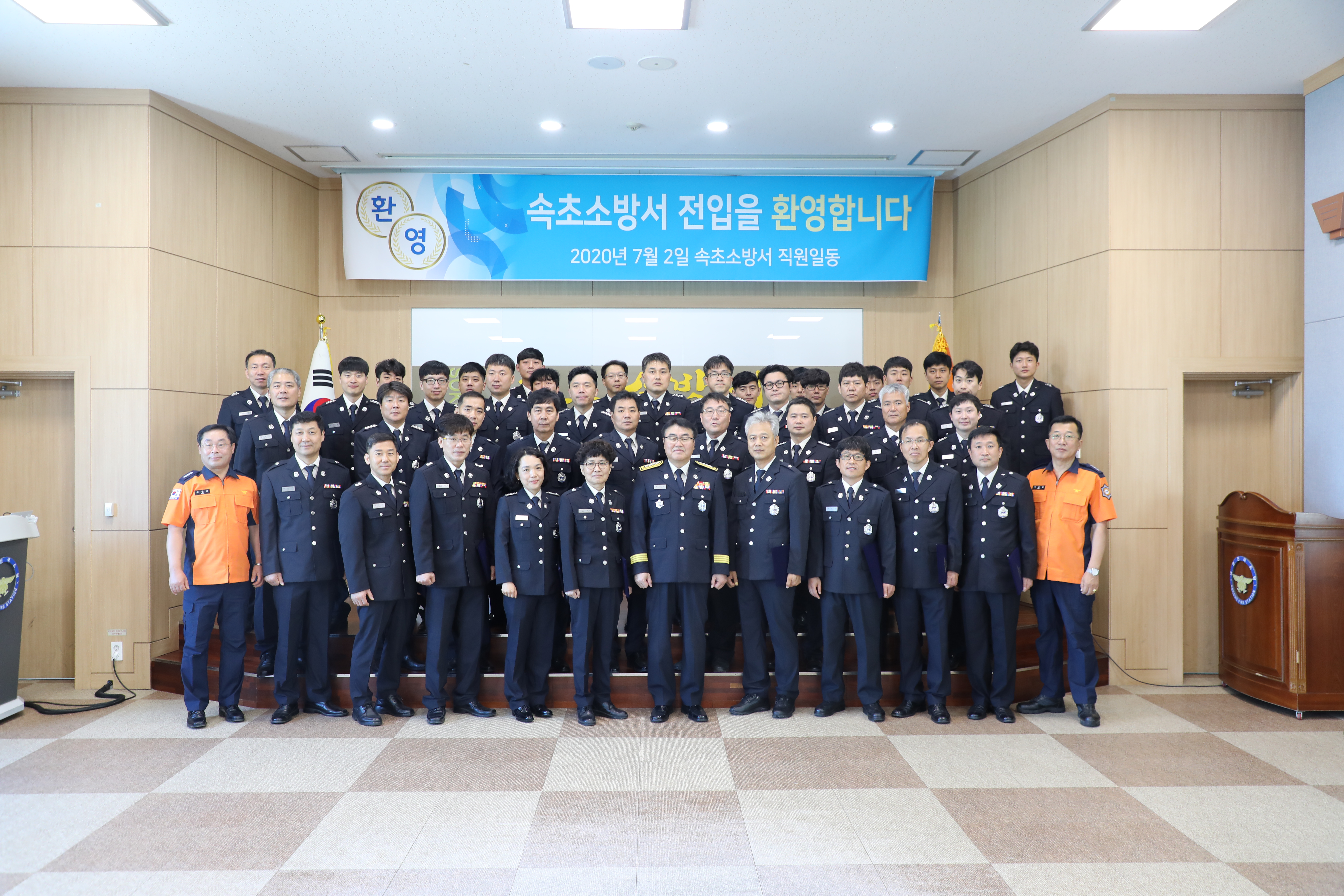 2020. 07.02.(목) 오전9시 30분 속초소방서 인사발령자 43명에 대해 신고식을 가졌다.