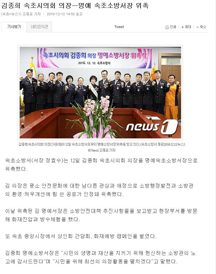 161212_강원신문,도민일보,뉴스1,방재신문_김종희_속초시의회_의장_명예소방서장_위촉.JPEG