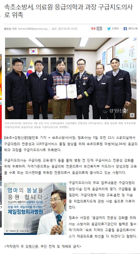 170105_강원신문,방재신문_의료원_응급의학과_과장_구급지도의사_위촉.JPEG