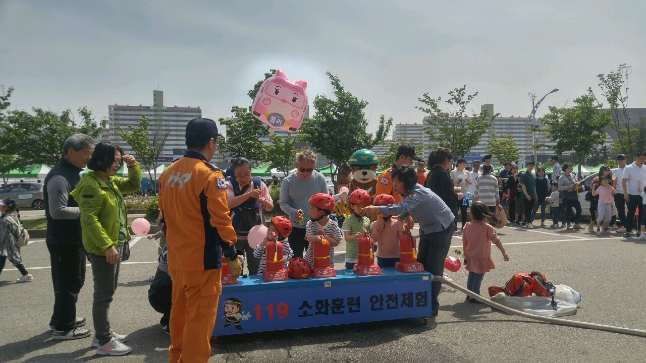 이번 소방안전체험장에서는 ▲에어바운스를 이용한 화재대피 및 연기탈출체험 ▲물소화기를 이용한 화재 진압 체험 ▲소방차량 전시, 인명구조견 포토존 운영 ▲ 대국민 SNS를 통한 강원 119신고앱, 주택용 소방시설 홍보 등 프로그램을 운영했다.