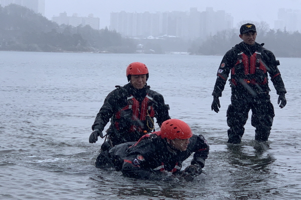 이날 훈련에는 구조대원 15명이 참석하였으며 기온상승으로 호수 등 내수면에서 얼음이 깨져 발생하는 안전사고를 가정하여 이루어졌다.