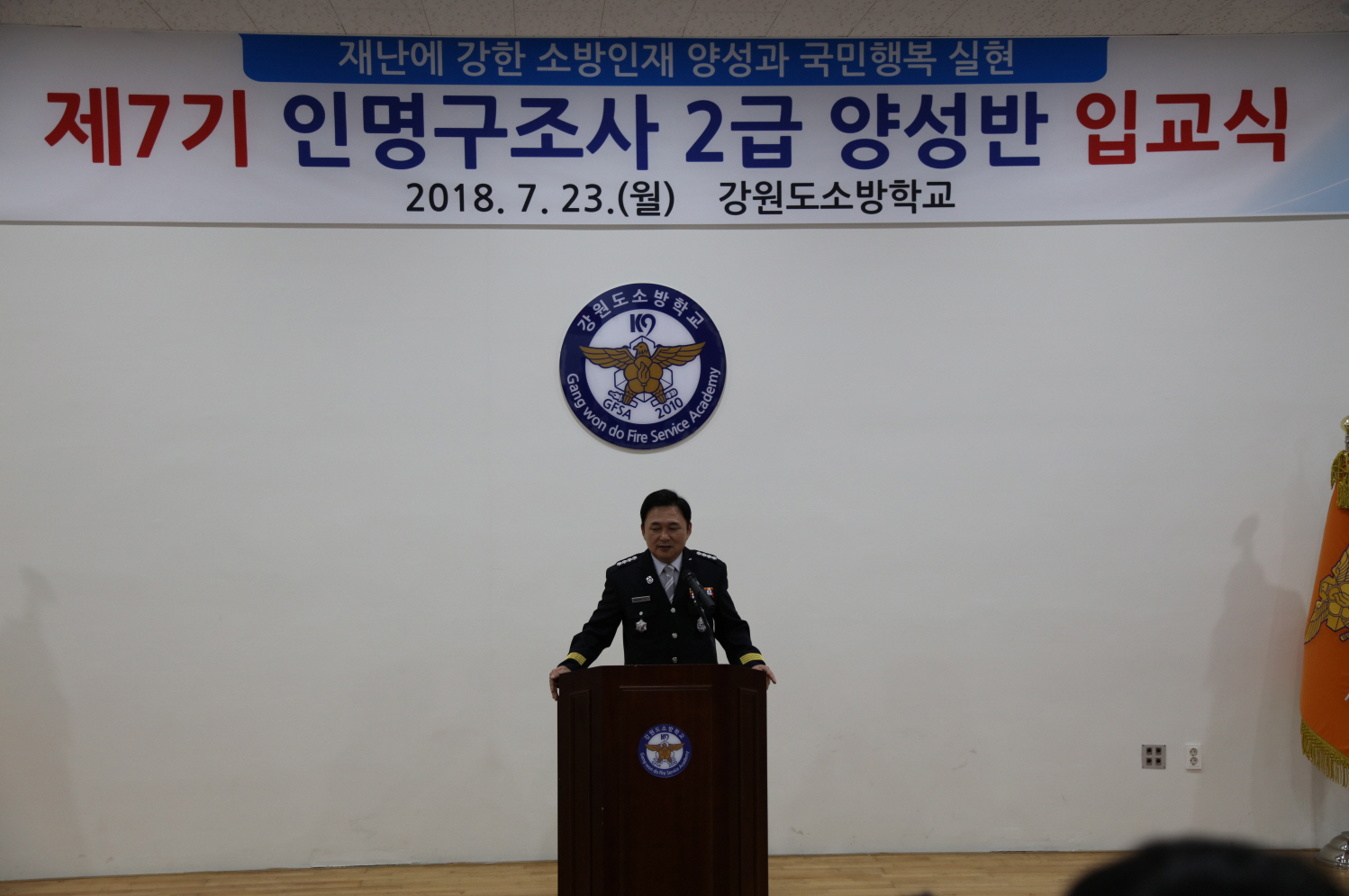 18년 7월 23일, 지방소방위 이하 119구조대 근무자 및 희망자를 대상으로 하는 제7기 인명구조사2급 양성반 입교식이 개최되었습니다.