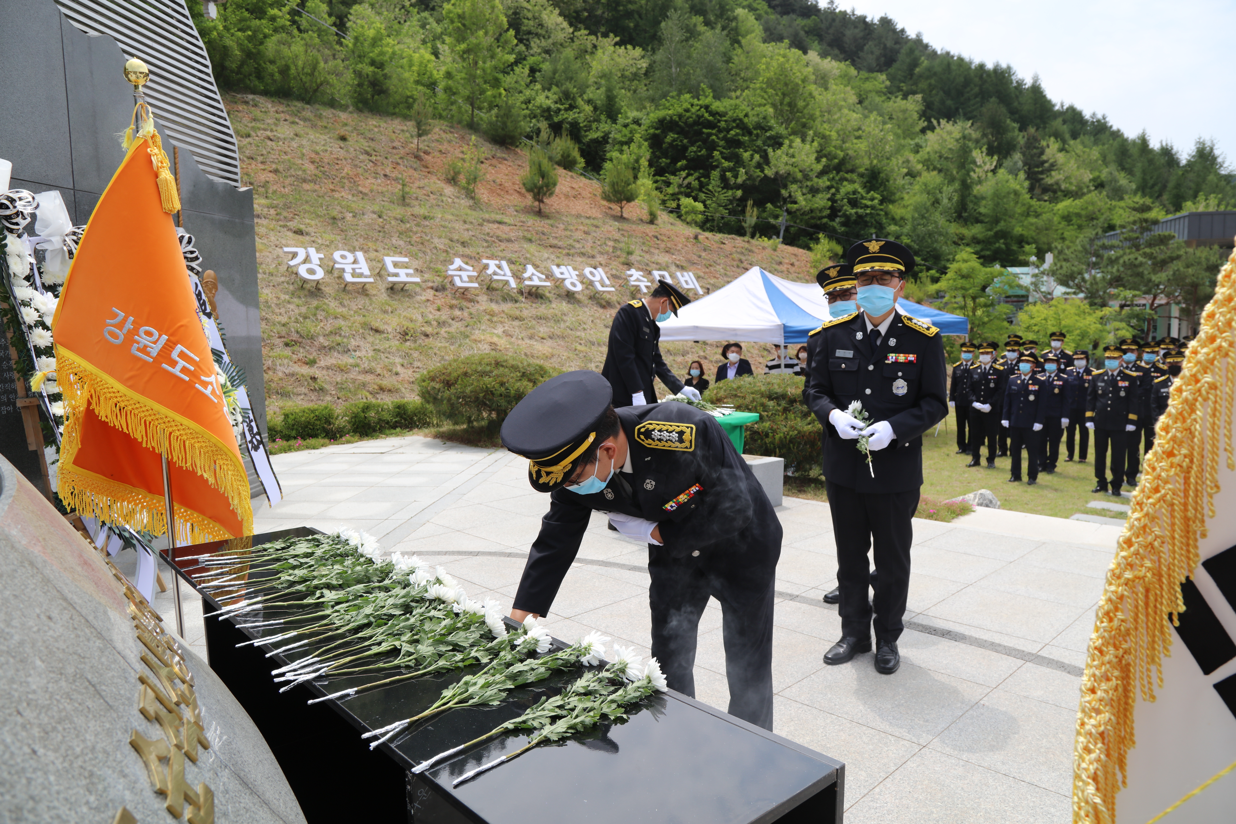 박태원 강원도소방학교장은“추모비에 기록된 36명*의 소방인은 누구보다 더 뜨거운 열정으로 국민을 위해 현장 활동에 임했다.”며“그들의 숭고한 희생정신을 본받아 대형화재 등 재난에 뛰어난 소방인재양성을 위해 힘쓰겠다.”고 전했다.