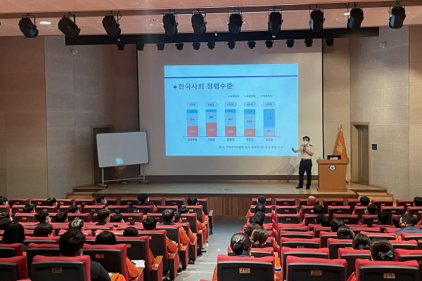 신임교육과정 제35기 소방사반 교육생 76명(남 50, 여 26)에 대한 공직윤리교육을 진행했다.