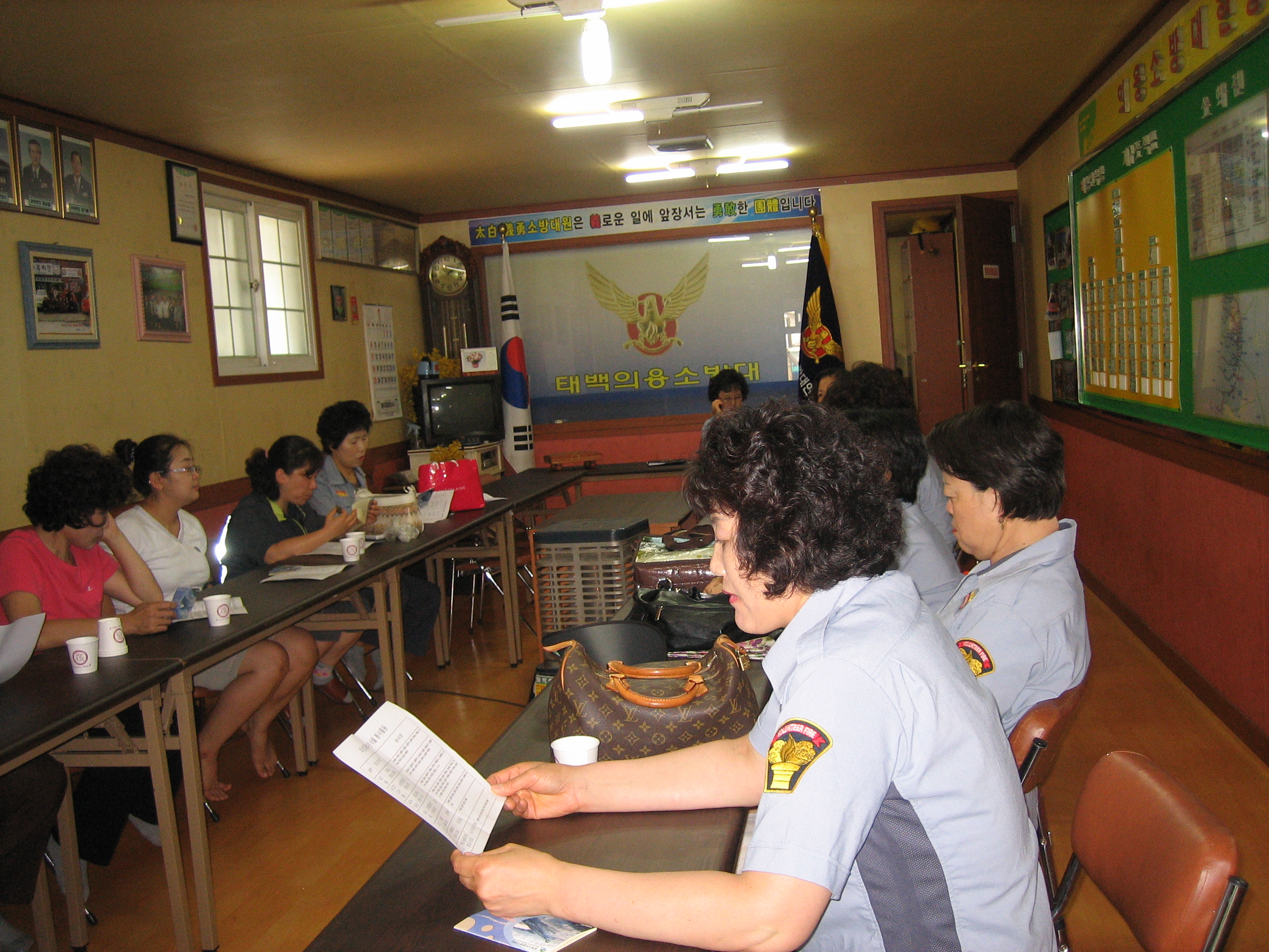 정기교육을 마치고 불조심 및 소방차 길 터주기 캠페인을 시내주변에서 실시하였다.