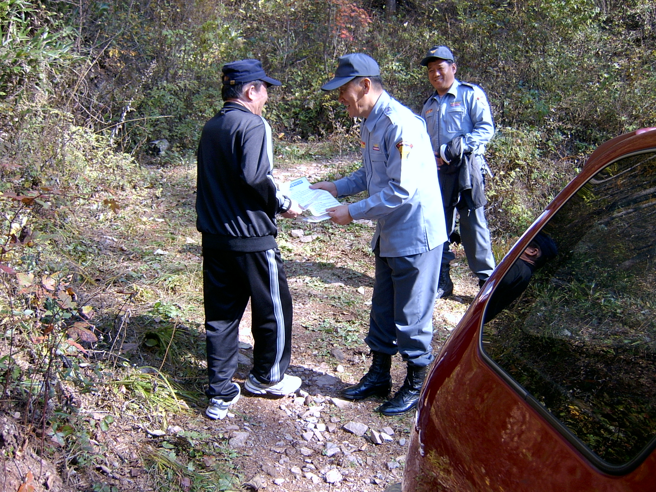 2 . 등산객에게 산불조심 전단지 배포
