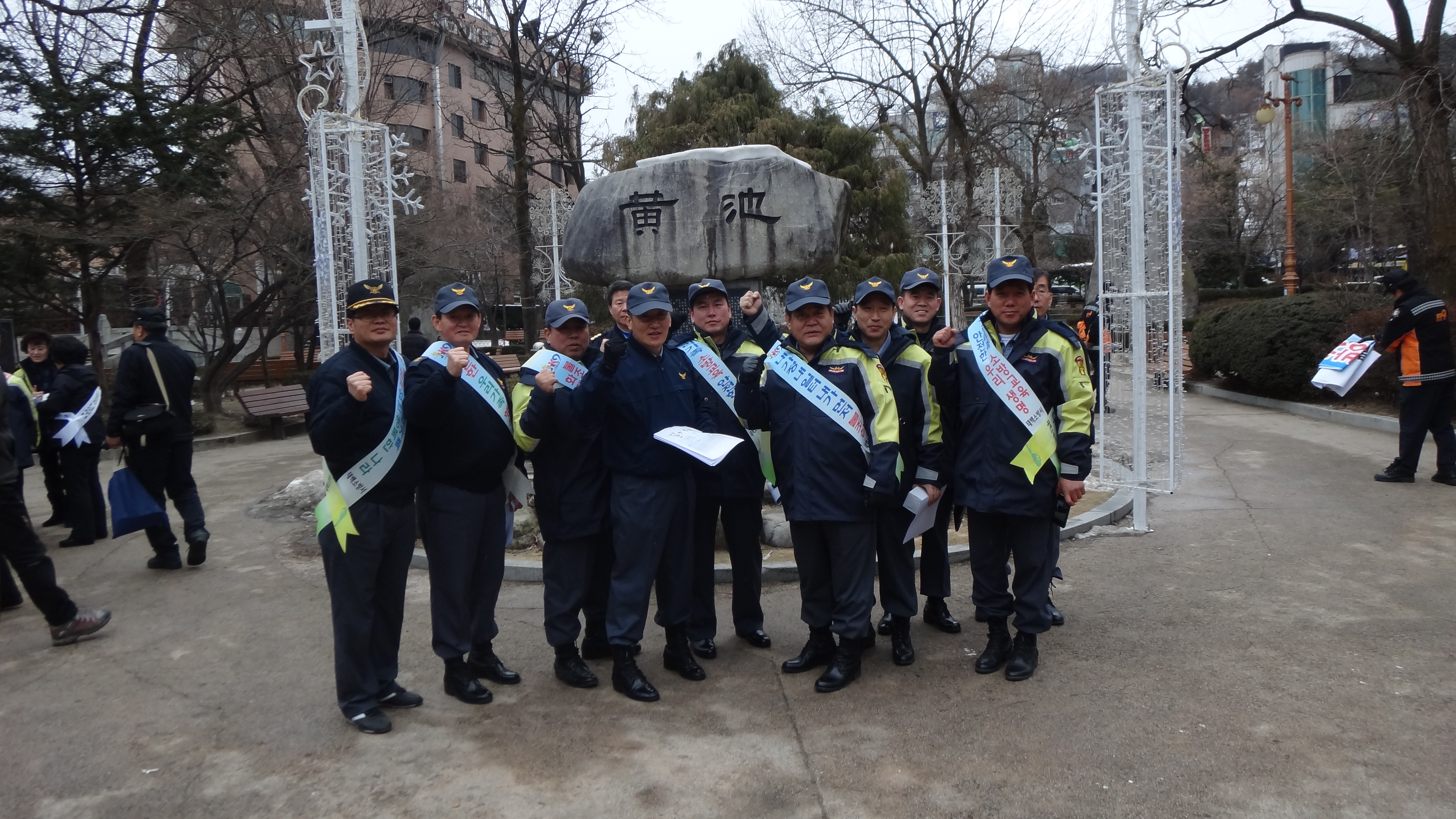 안전요원들과 소방서직원과 남녀의용소방대원들과의