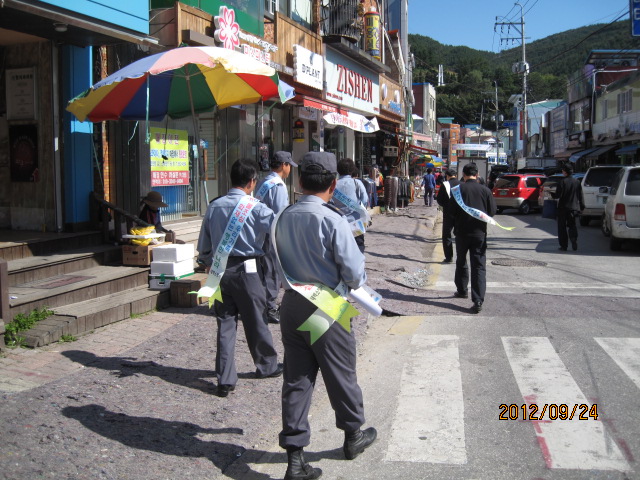 24일 황지연못 및 시내일원에 소방차 길터주기와 심폐소생술내용이 담긴 전단지를 태백소방서 직원과함께 배포하였다 .