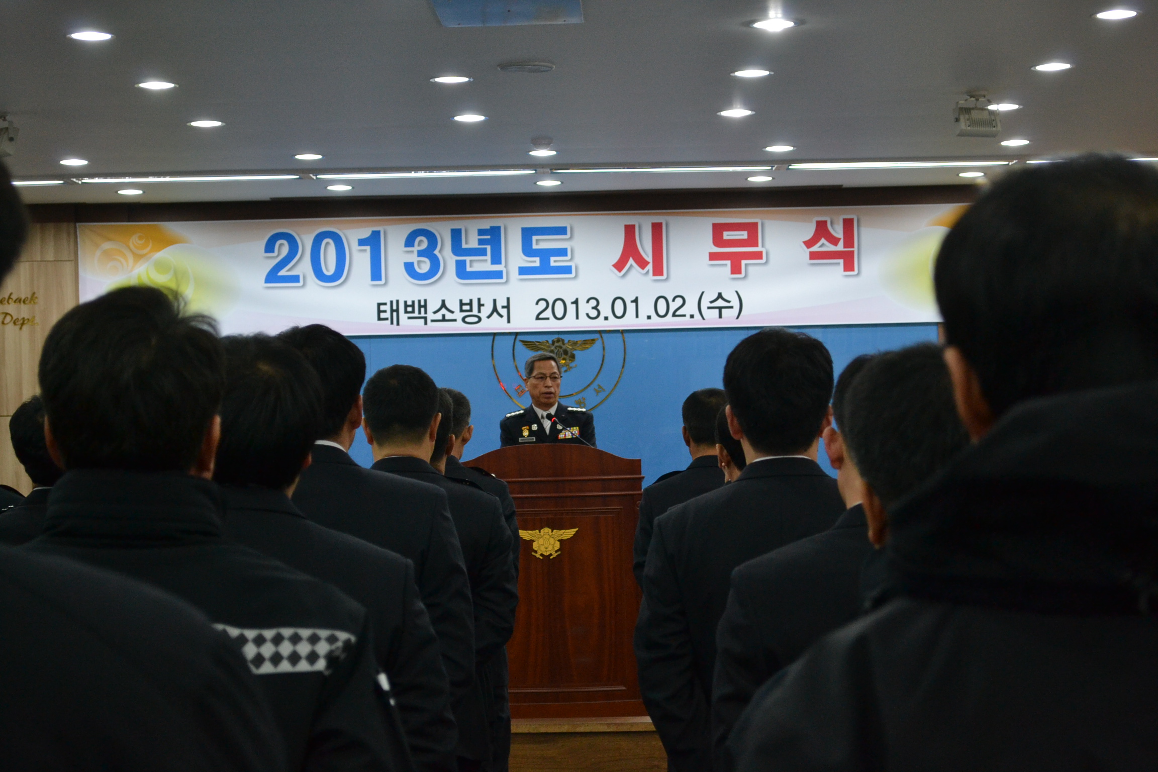 태백소방서(서장 김진봉)는 2013년 계사년 새해를 맞은 1일 1567m 태백산 천재단에서 태백시민들과 소방서 직원들의 안전을 기원하는 안전기원제 행사를 가졌으며, 2일 10시 대회의실에서 시무식 행사를 가졌읍니다