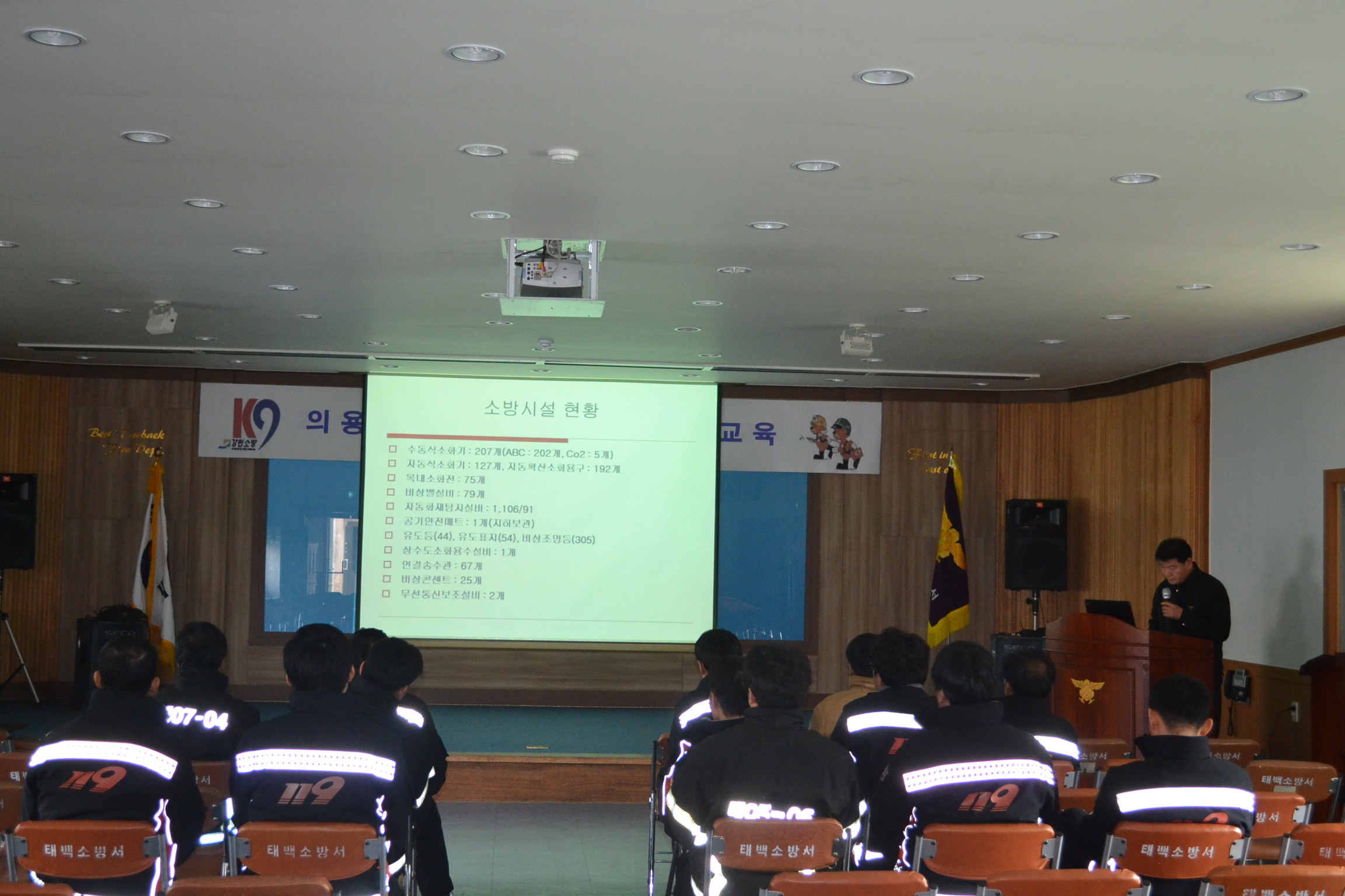 태백소방서(서장 김진봉)는 2013.02.18(월) 화전동소재 팔마아파트에서 고층건물적응훈련을 실시하였읍니다. 이번 훈련은 본서 합동훈련으로 영상도상훈련 및 자위소방대 합동으로 고가차 전개 인명구조훈련 및 아파트 내 주차 난립상태에서 소방통로 확보훈련 병행하여 실시하였읍니다.