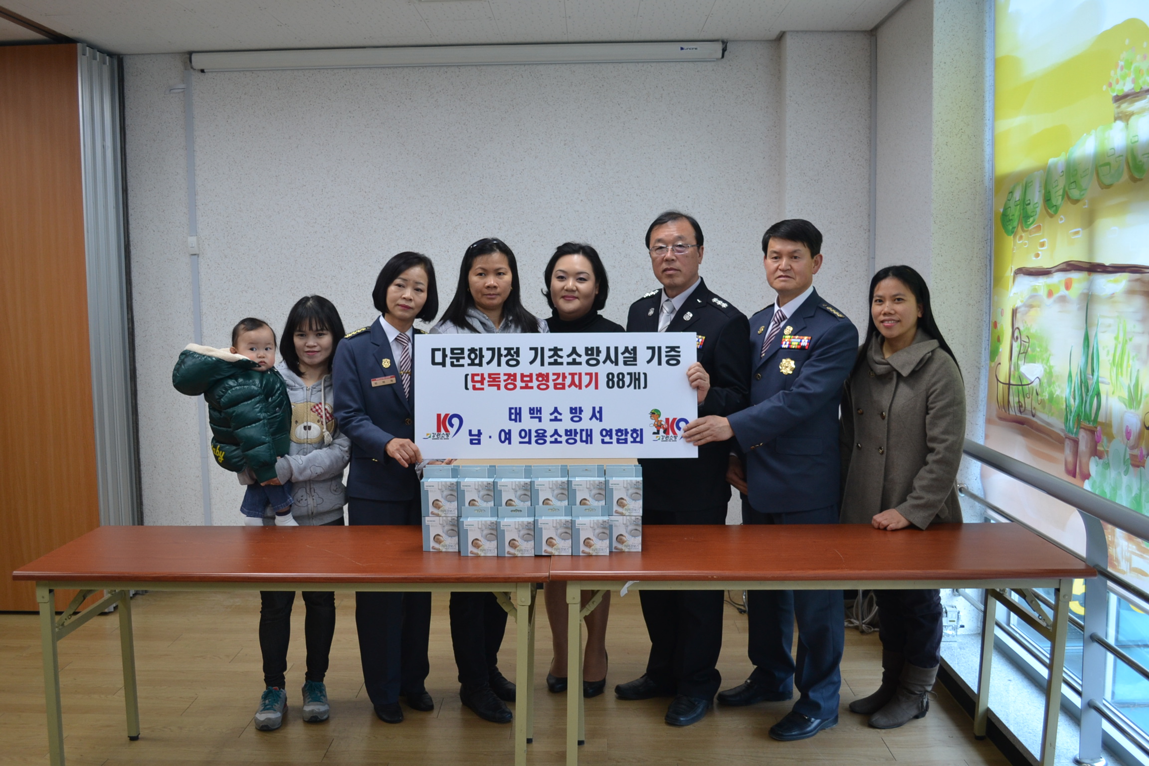 태백소방서(서장 김진봉)는 2월26일(화) 태백시 다문화가족지원센터를 방문하여 남,여의용소방대장 및 다문화가정이 참석한 가운데 다문화가정 88가구를 대상으로 단독경보형 감지기 무료 보급을 실시하였읍니다.