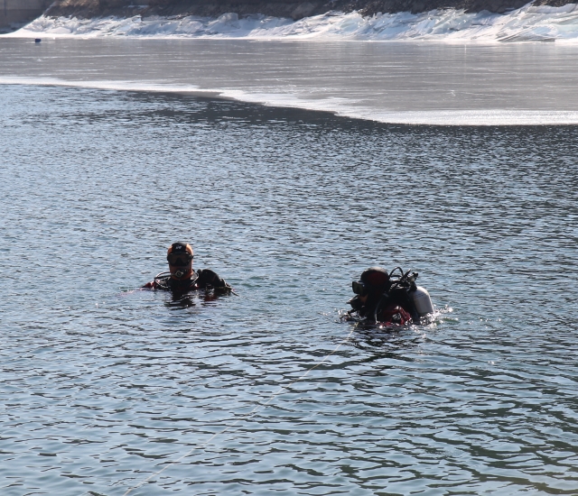 ◯ 소방서는 ▲냉수 적응 및 아이스다이빙 훈련 ▲각종 수난구조장비 점검 및 사용법 숙지 ▲해빙기 얼음붕괴 사고 시 수중 탐색 및 구조기법 등을 중점으로 훈련을 실시했다.