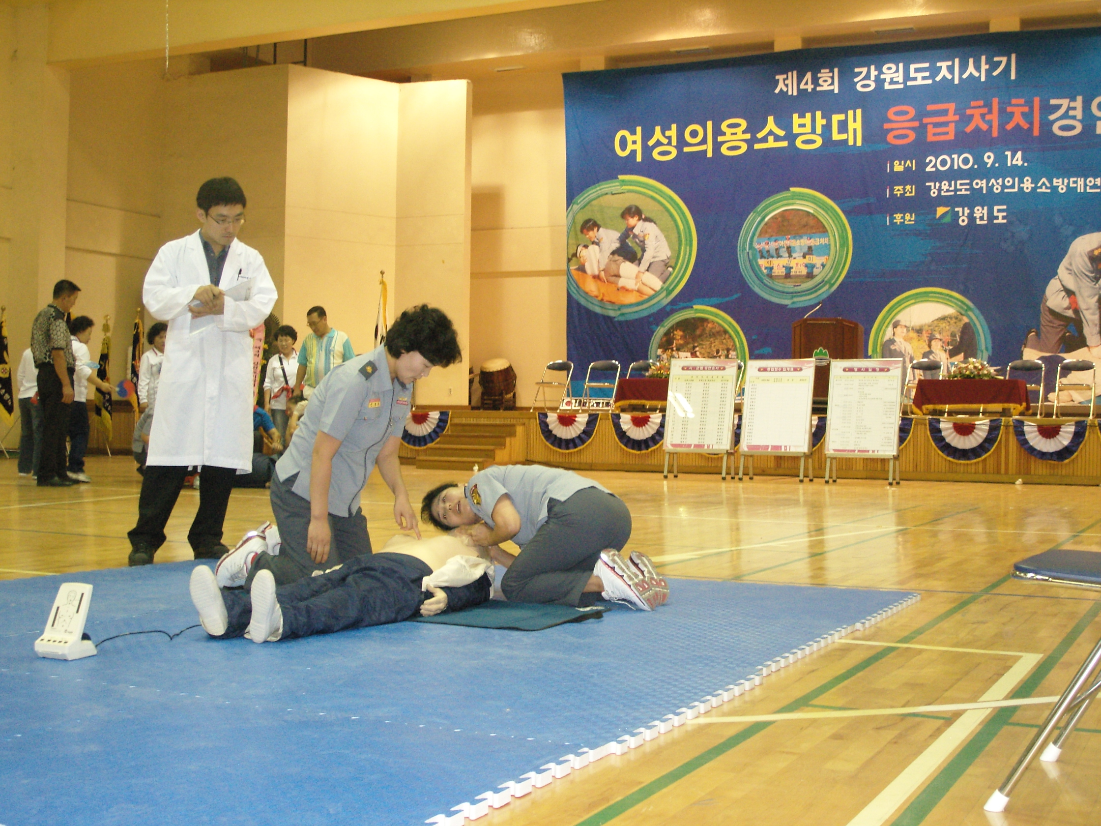 태백시 여성의용소방대연합회(회장 하태연)는 9월 14일(화) 원주시에서 열린 제4회 강원도지사기 여성의용소방대 응급처치 경연대회에 참가하여 평소 갈고 닦은 응급처치법과 장기자랑을 실시하여 장려상을 받았다.