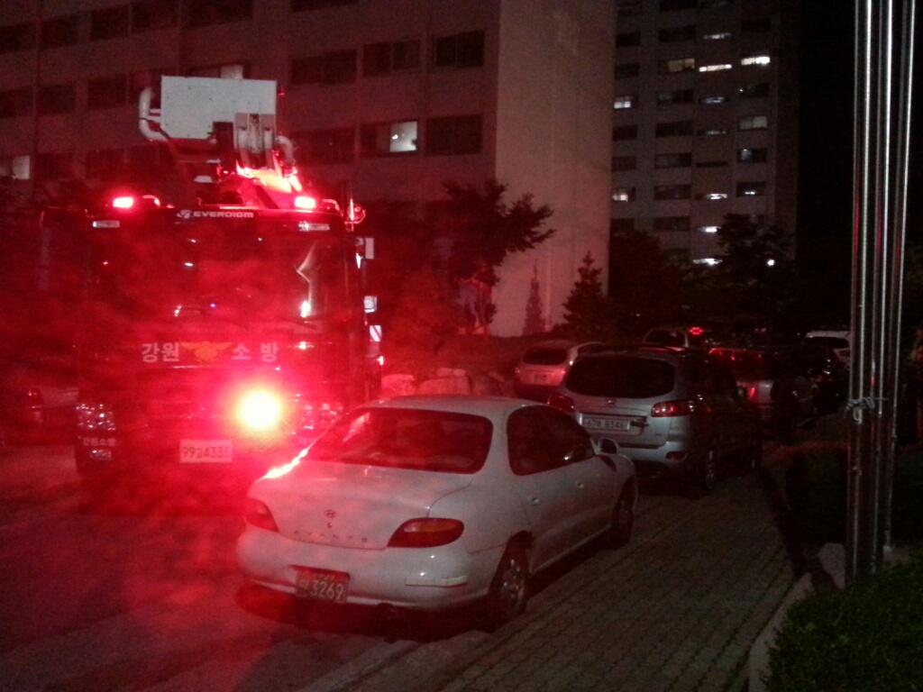 태백소방서(서장 김진봉)는 9.12(수) 야간시간대(21:30~22:30)을 이용, 황지동 소재 현대아파트에서 소방차 진입 및 고가사다리차 전개훈련을 실시하였다.