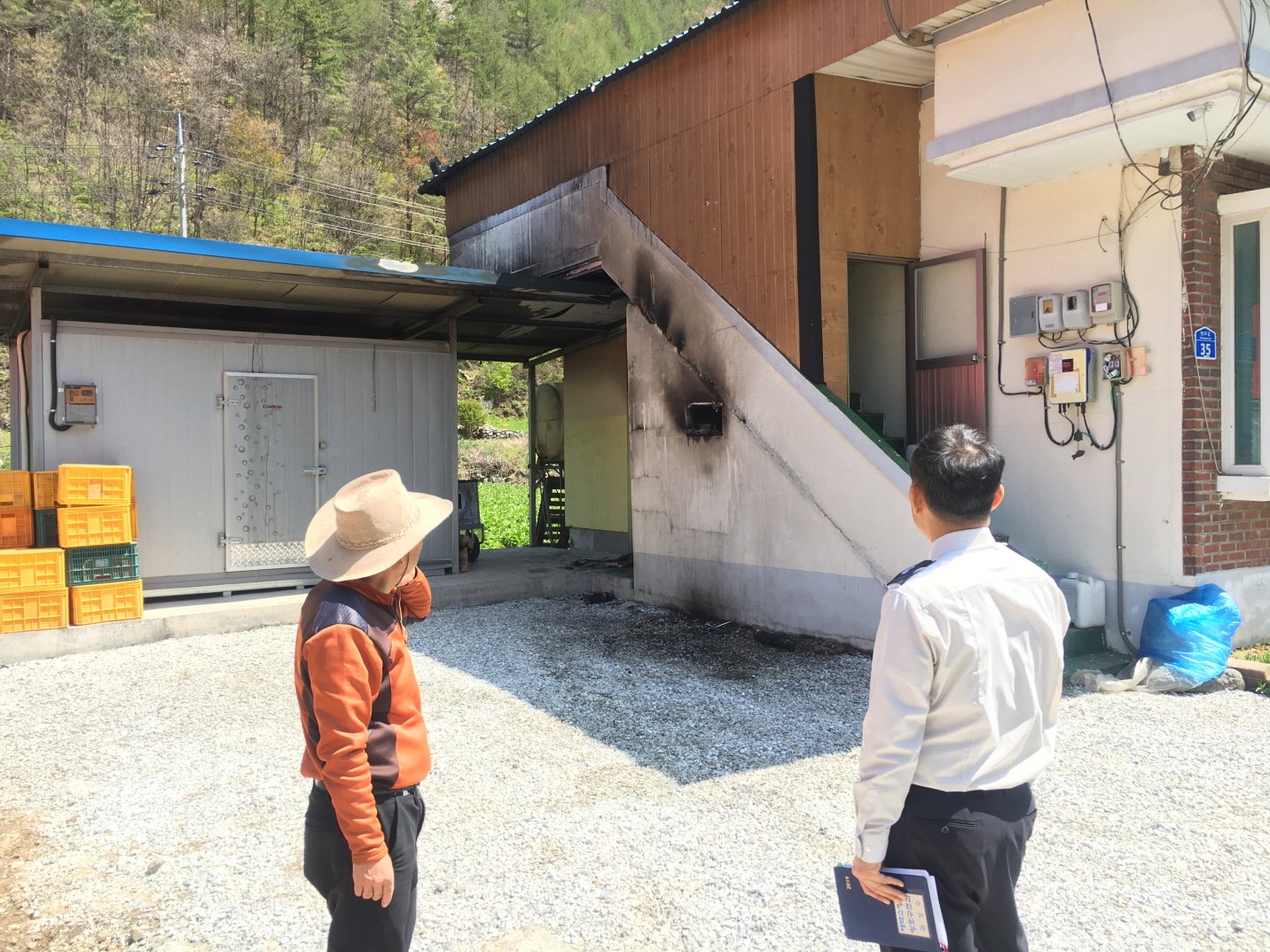 화재가 난 주택 뒤에는 야산이 있고 보일러실 옆에는 비닐하우스, 민가가 있었다. 또한 출하를 앞둔 산나물 저장고가 바로 옆에 있어 자칫 잘못하면 불이 옮겨 붙을 수 있었다.