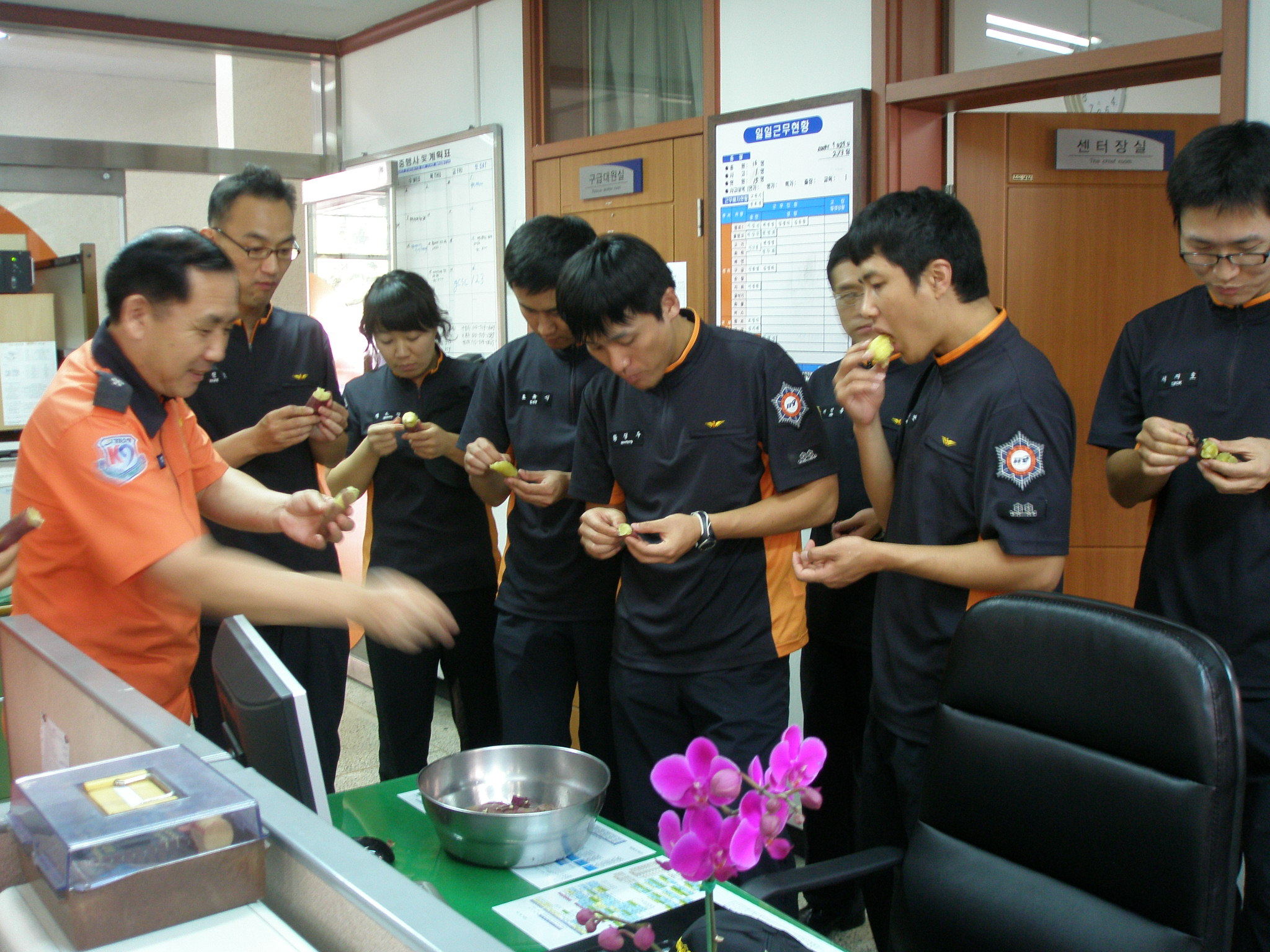 맛있는 고구마를 전달하고 각종 재난사고 및 구급출동으로 고생하는 직원들을 격려하였습니다.
