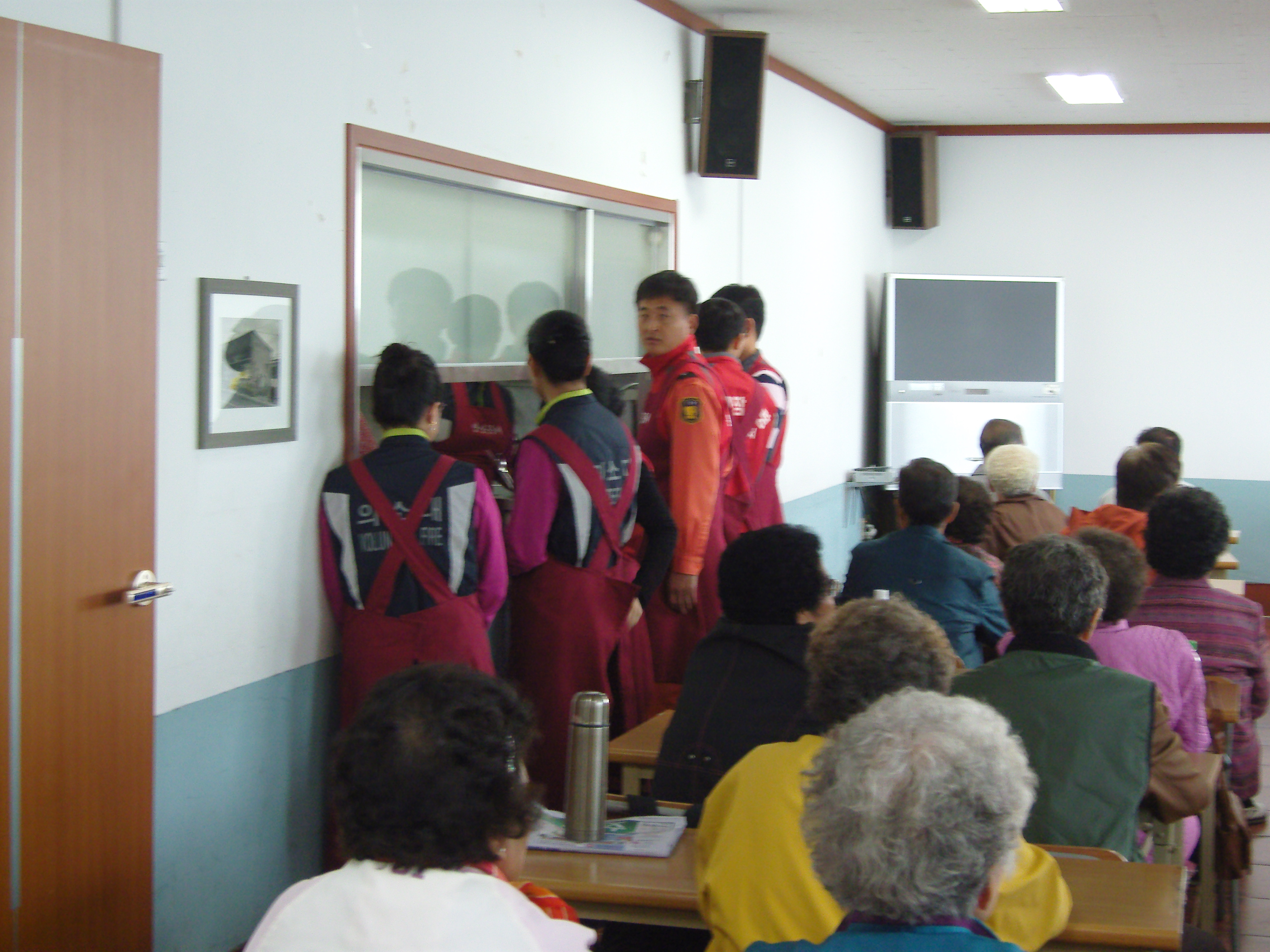 흥업여성의용소방대(대장 오오석)는 원동에 위치한 밥상공동체에 식사봉사를 다녀왔습니다. 매일 이곳에 찾아와서 식사를 하는 분들이 200여명 정도라고 합니다. 대부분 노숙자이거나 홀로사시는 노인분들이었는데 식사를 하시면서 너무나도 감사해 하셨습니다. 많은 분들은 이 곳에서 드시는 점심이 하루 식사의 전부라는 말씀에 밥을 듬뿍 담아드렸답니다. ㅎㅎ그래도 잔반은 거의 나오지 않았구요. 음식 귀한줄 모르고 투정하는 아이들을 한 번씩 데려와서 산교육을 시켰으면하는 바램도 생겼답니다.