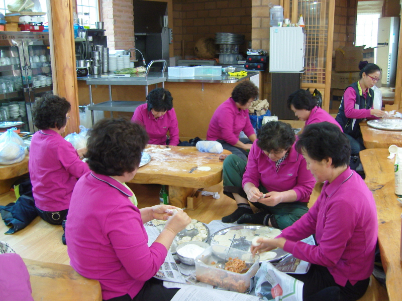 대원 모두가 모인 송년모임에서 만두를 빚어