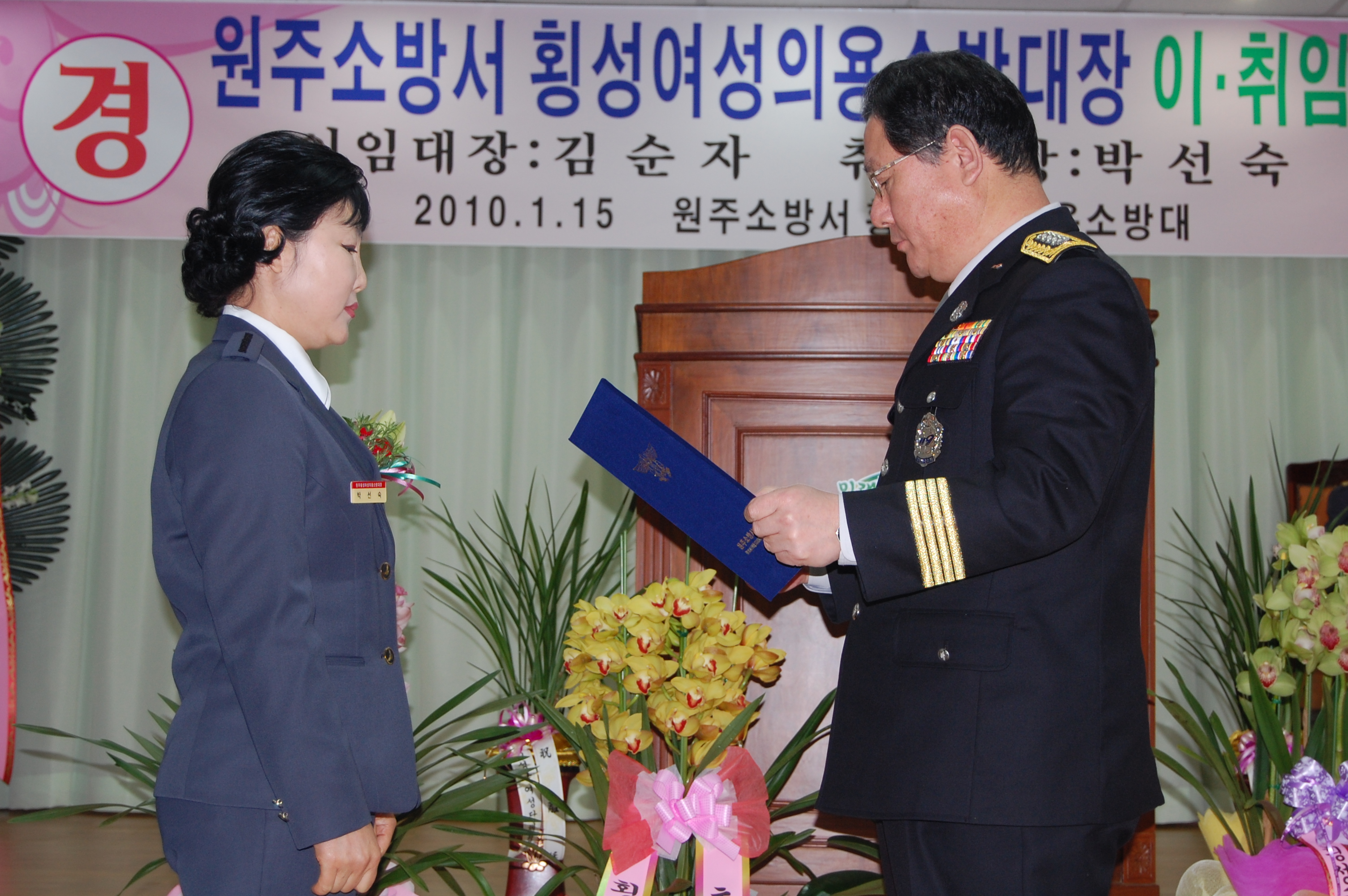 원주소방서(서장 조근희) 횡성여성의용소방대 대장 이취임식이 2009년 1월 15일 11시 횡성여성회관에서 열렸습니다.