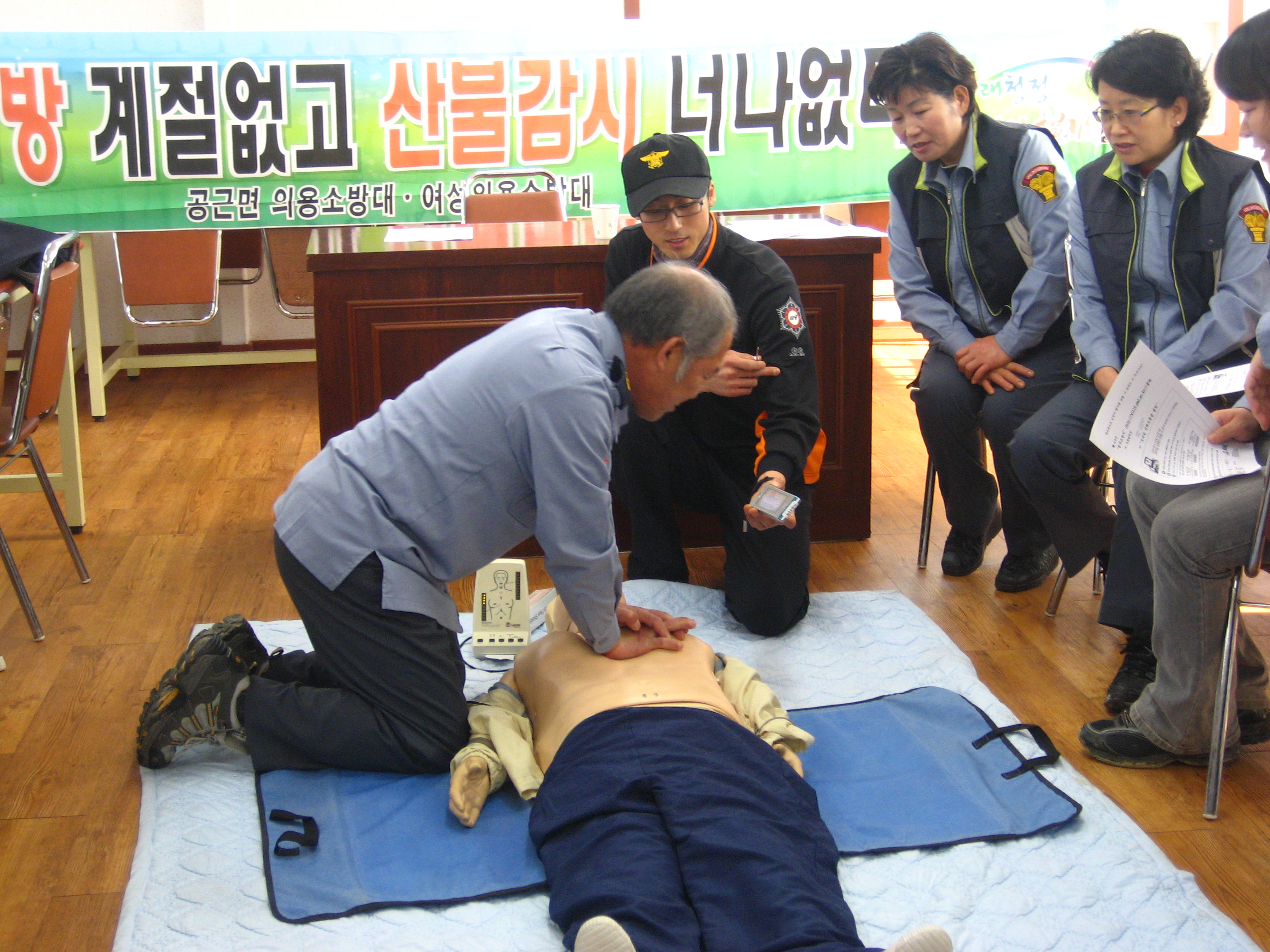 2.23일 공근남.녀의용소방대원들은 심폐소생술 실습및 단합을 위한 척사대회를 가졌습니다.