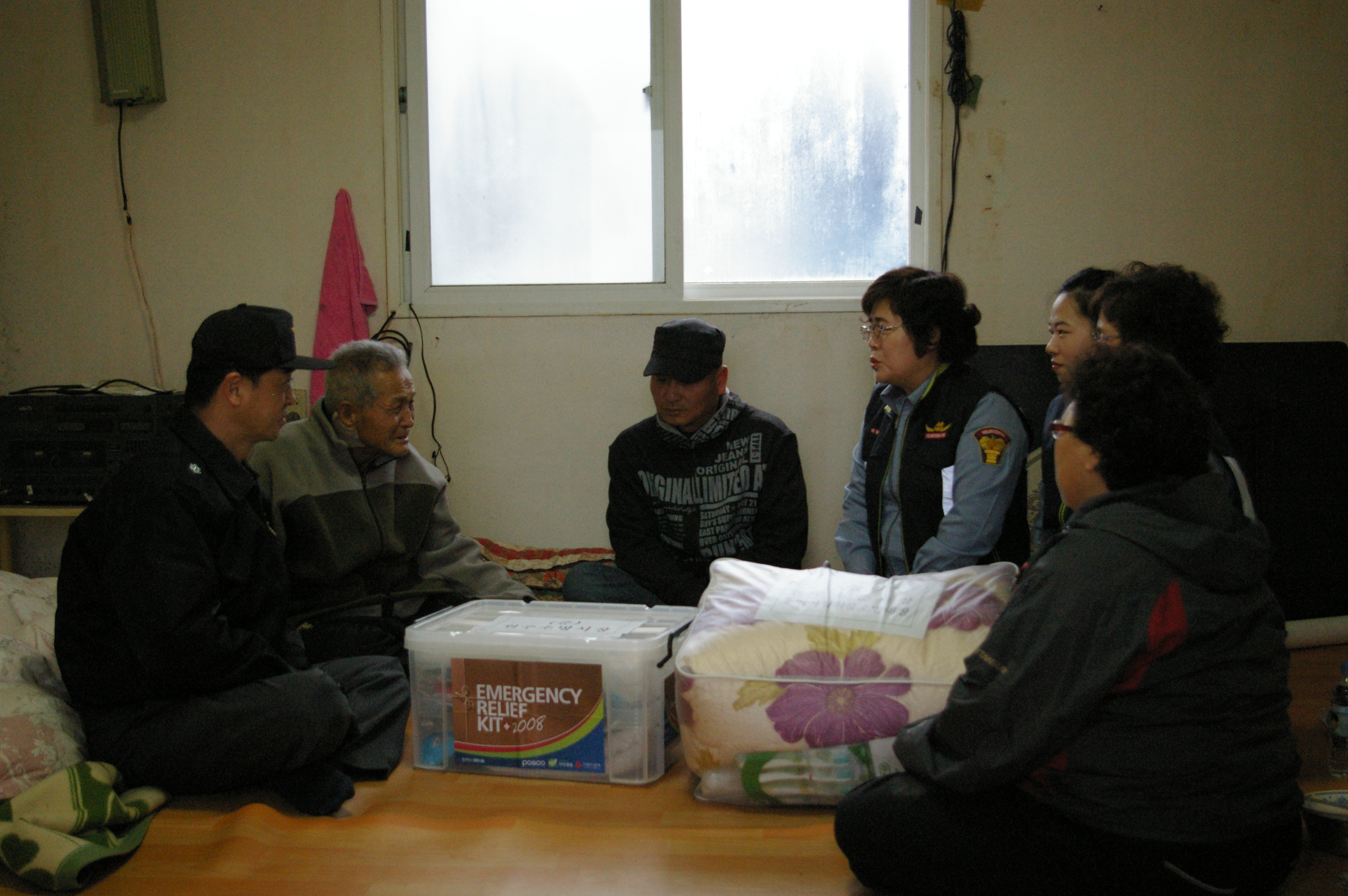 할아버지는 임시거처인 마을회관에서 지내고 계셨습니다. 구호물품을 전달할때 할아버지께서는