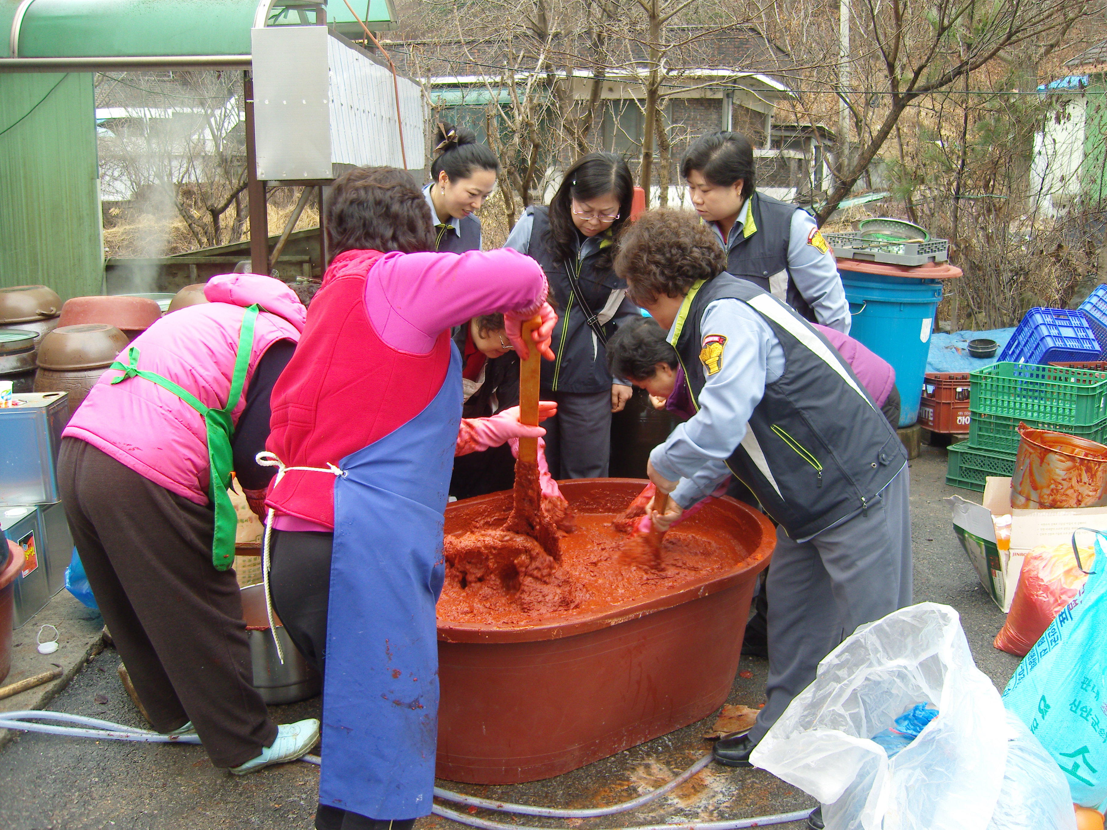 지난 3월6일 흥업여성의용소방대 대장님(오오석)께서 장을 담그셨습니다. 그런데 대원 여러분이 장담근다는 이야기를 듣고 삼삼오오 모여들더니 돕기 시작하였습니다. 이웃돕기만이 봉사라는개념을 깨뜨려주었고 대원들간의 친목도모와 서로가서로를 돕는 진정한 봉사가 무엇인가를 우리 흥업여의소대 대원들이 몸소 실천하는 모습을 보고 다시한번 깨닫게 되었습니다.
