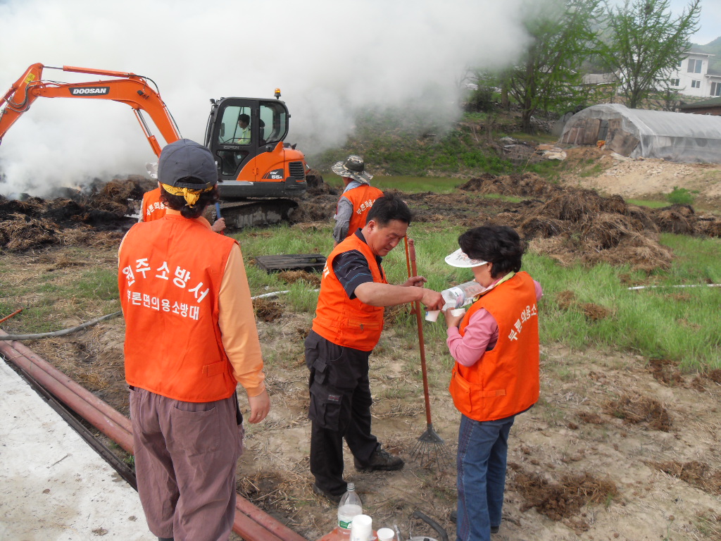 부론여성의용소방대(대장 김윤수)는 9일 오후3시경 관내 정산리 샘골마을에서 발생한 화재에 출동 지원활동을 진행했습니다. 이날 화재는 오후 3시경 부터 오후 8시경까지 진행된 관계로 귀래와 원주에서도 지원을 오셨으며 여성대는 진압대원들에서 음료와 간식 제공등 지원활동을 진행했습니다.