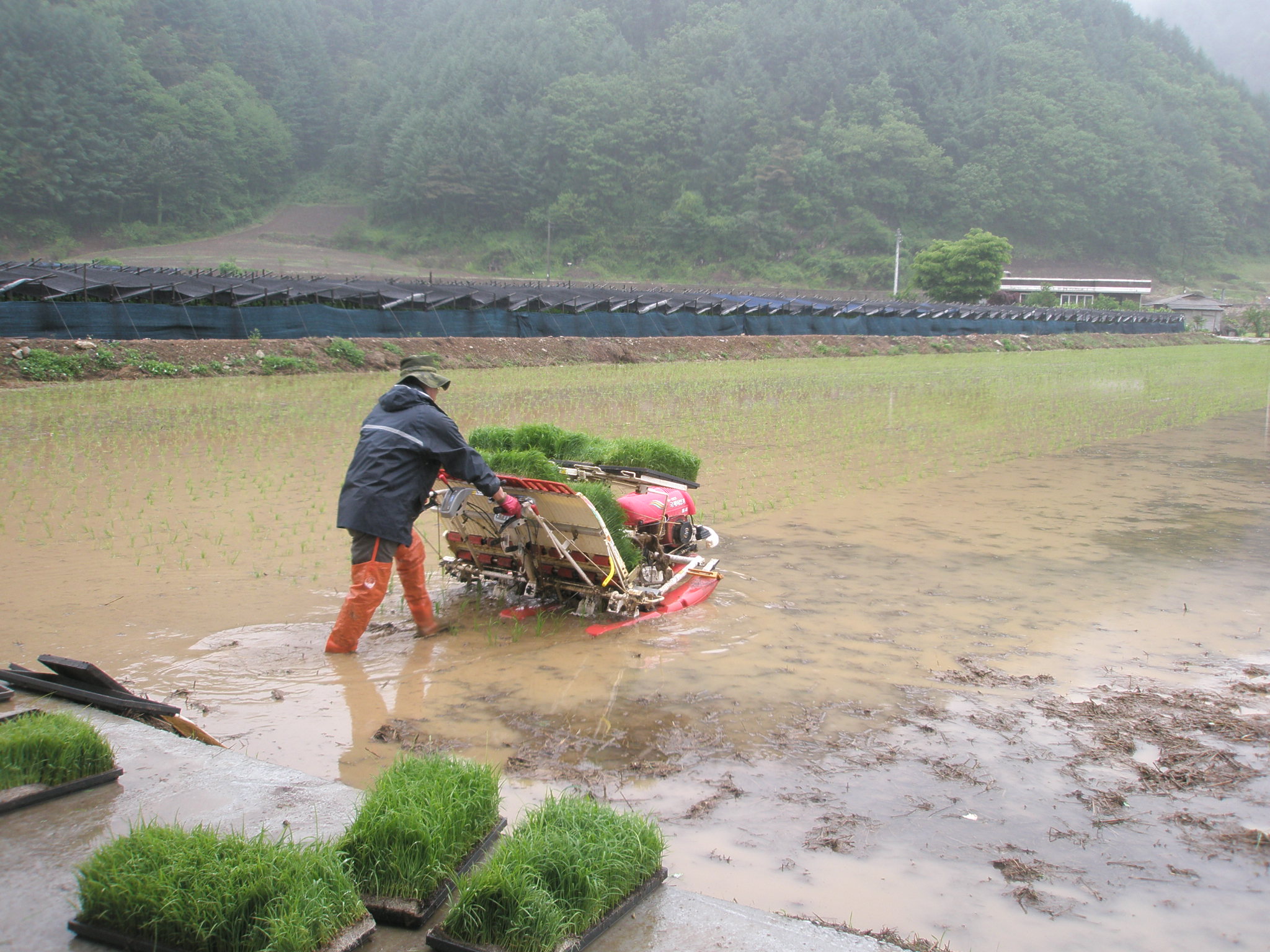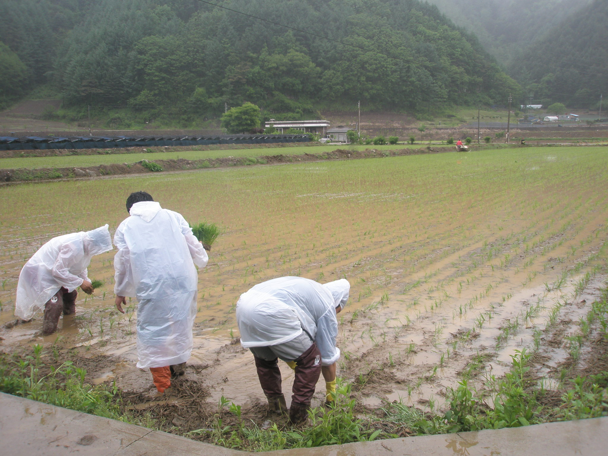 하였습니다, 비가오는 궂은 날씨임에도 참석해 모내기를 마칠수 있도록