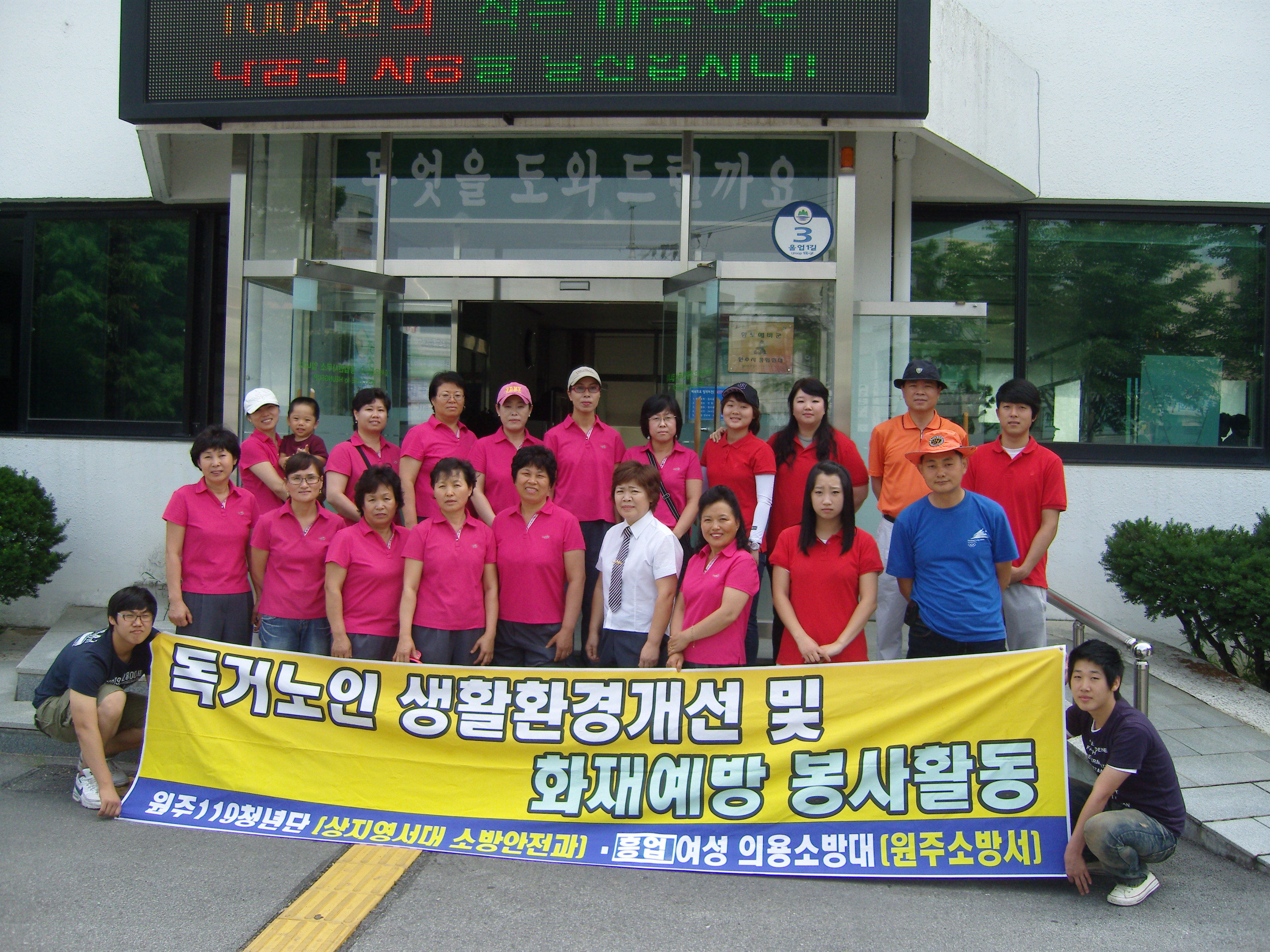 2010년 6월28일 흥업여성의용소방대(대장: 오오석)는 상지영서대 소방행정학과 교수님(한상철), 학생들과 함께 독거노인 생활환경 개선을 위해 봉사활동을 했습니다.