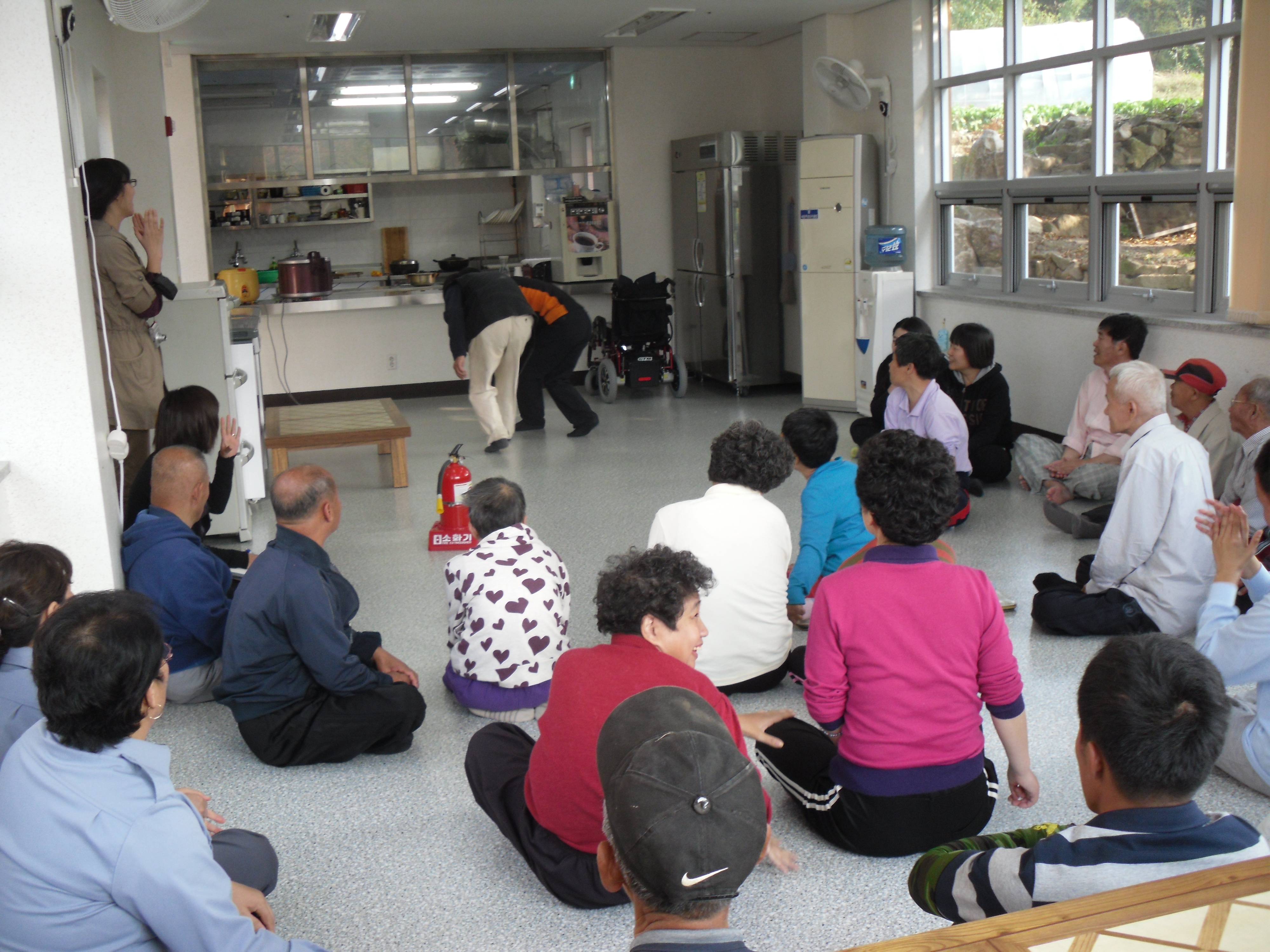 쉴틈없이 바쁜 소방의 특성상 예정된 교육시간보다 살짝쿵 늦게 시작하였지만, 사랑촌 가족들은 열렬한 환호로 너무도 반갑게 맞아주셨답니다.