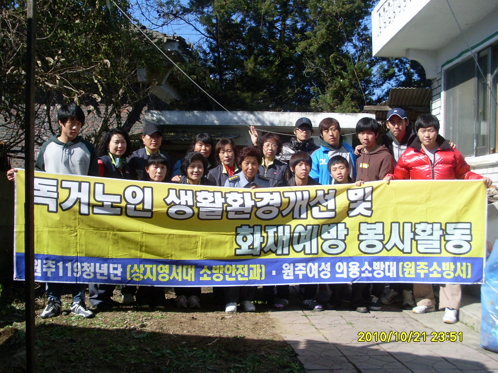 지정 여의소대(대장 김명옥)는 지난10월29일에 관내 조손가정에서 상지영서대 소방안전과 학생들과 함께 가을맞이 대청소와단독형 감지기 설치를 하여드렸습니다. 대원 여러분 수고 많이 하셨습니다.물론 학생 여러분도....
