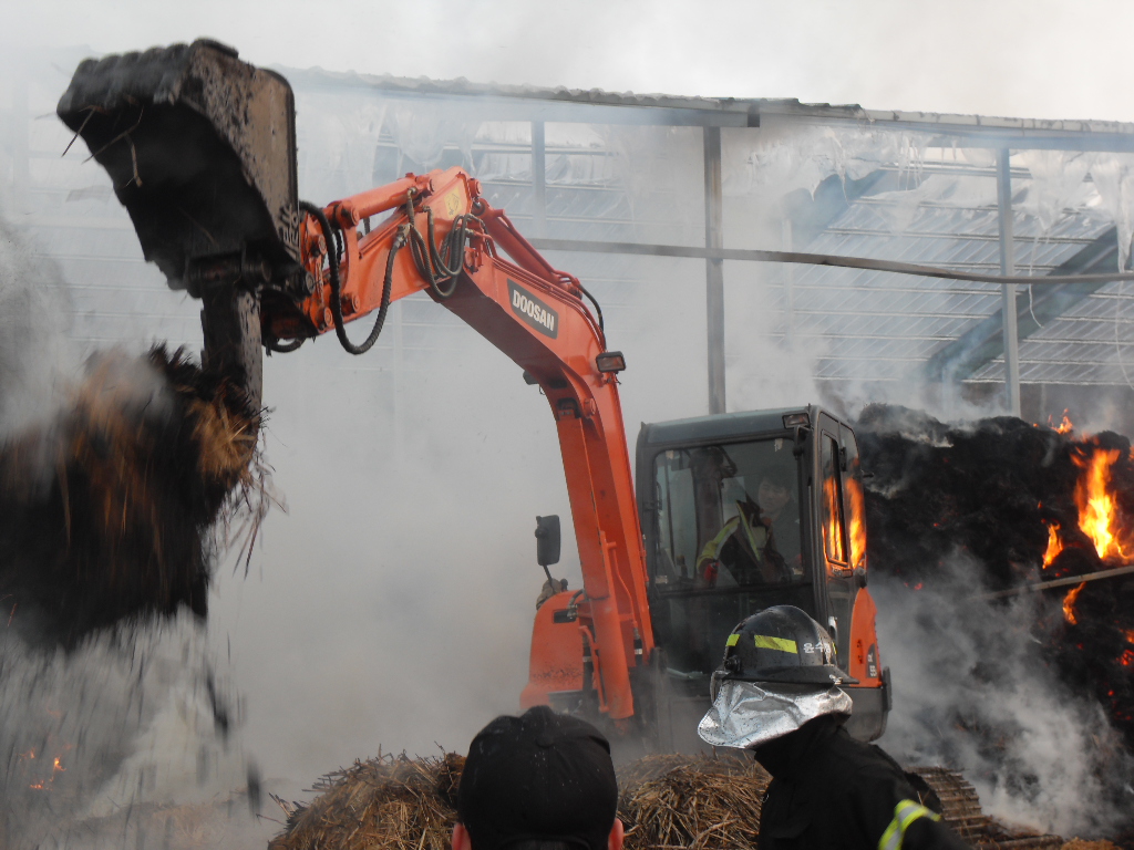 부론의용소방대(대장 김진수)는 지난 11월 20일 오후 3시 30분경 발생한 손곡1리 짚가리 화재 현장에 신속하게 출동 화재 진압 활동을 진행했습니다. 이날 화재는 가축축사 증축공사중 용접 불꽃이 짚단에 튀기면서 발생한것으로 특히 농촌지역에서 축사 주변에서의 용접작업에 각별한 주의가 필요함을 다시한번 알려주었습니다. 이날 화재는 짚단 화재의 특성상 늦은 시간까지 짚단 모두를 해체하면서 속에 있는 불씨까지 진화 하느라 많은 애를 먹었습니다. 늦은 시간까지 참여해주신 남여 의소대원 모두에게 감사드립니다.