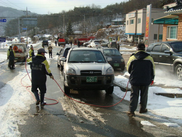 태장119안전센터 관할 호저의용소방대의 구제역 방역 활동입니다