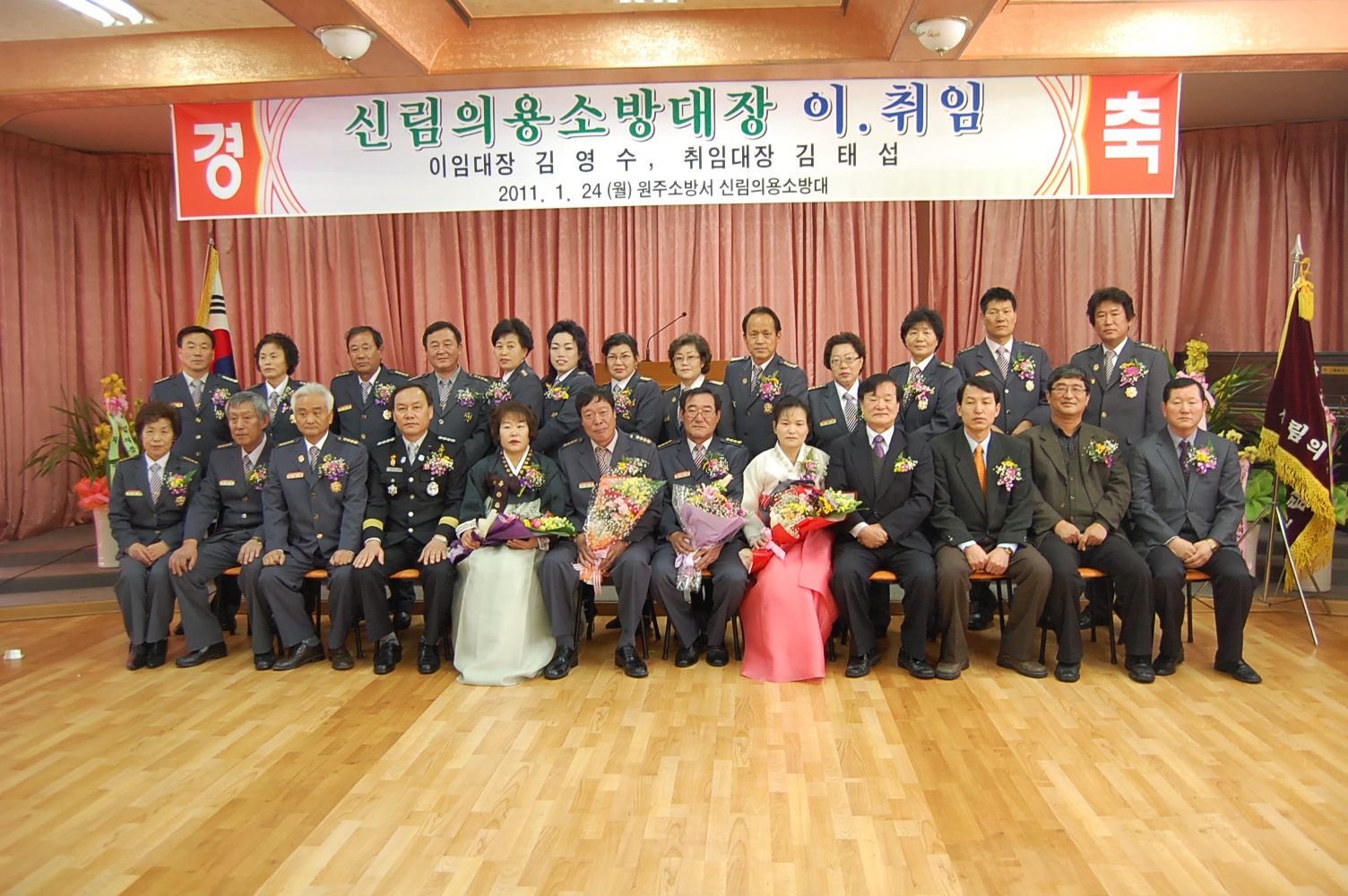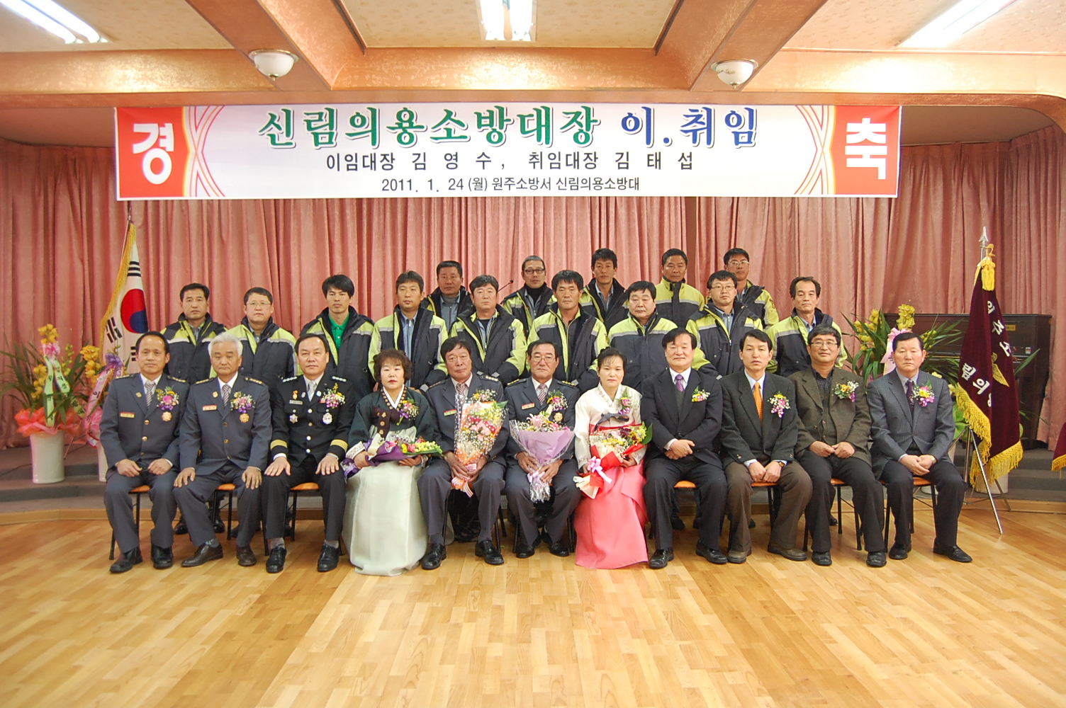 원주소방서(서장. 박창진)는 2011.01.24 (월) 11:00 - 신림면복지회관에서 제15대 신림의용소방대장 이취임식을 가졌습니다.