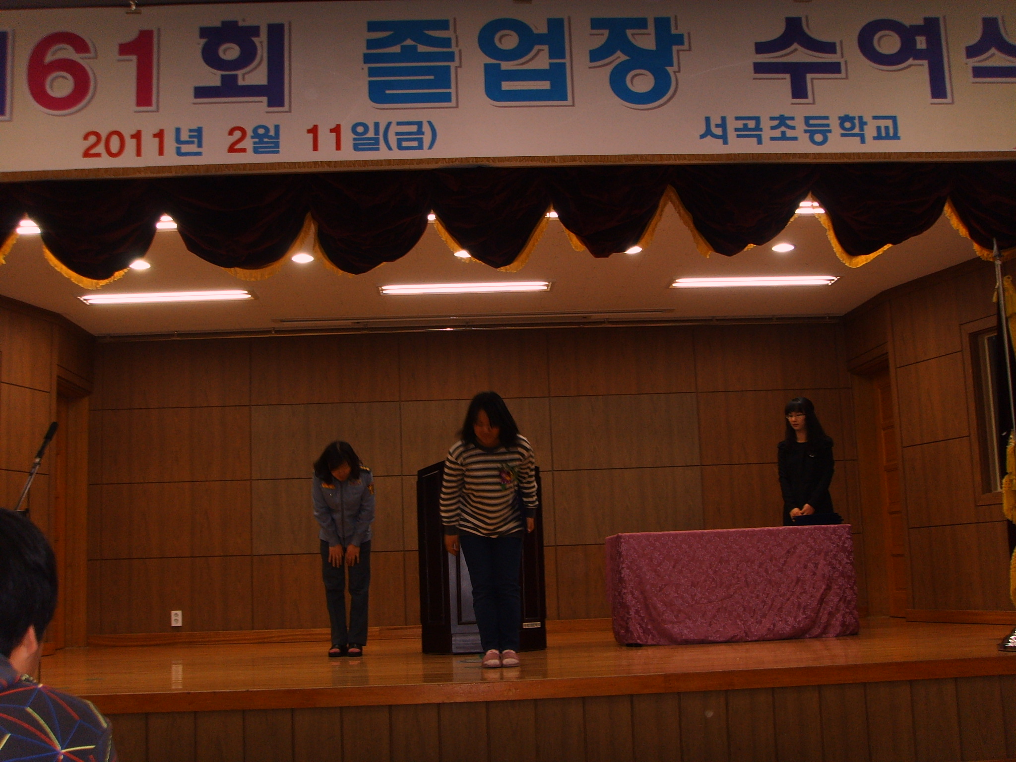 판부여성대 (대장 노순일) 는 11일 오전11시 판부면 서곡초등학교 와 금대초등학교 졸업식을 방문해 장학금 (각 10만원) 을 전달 하였습니다 .