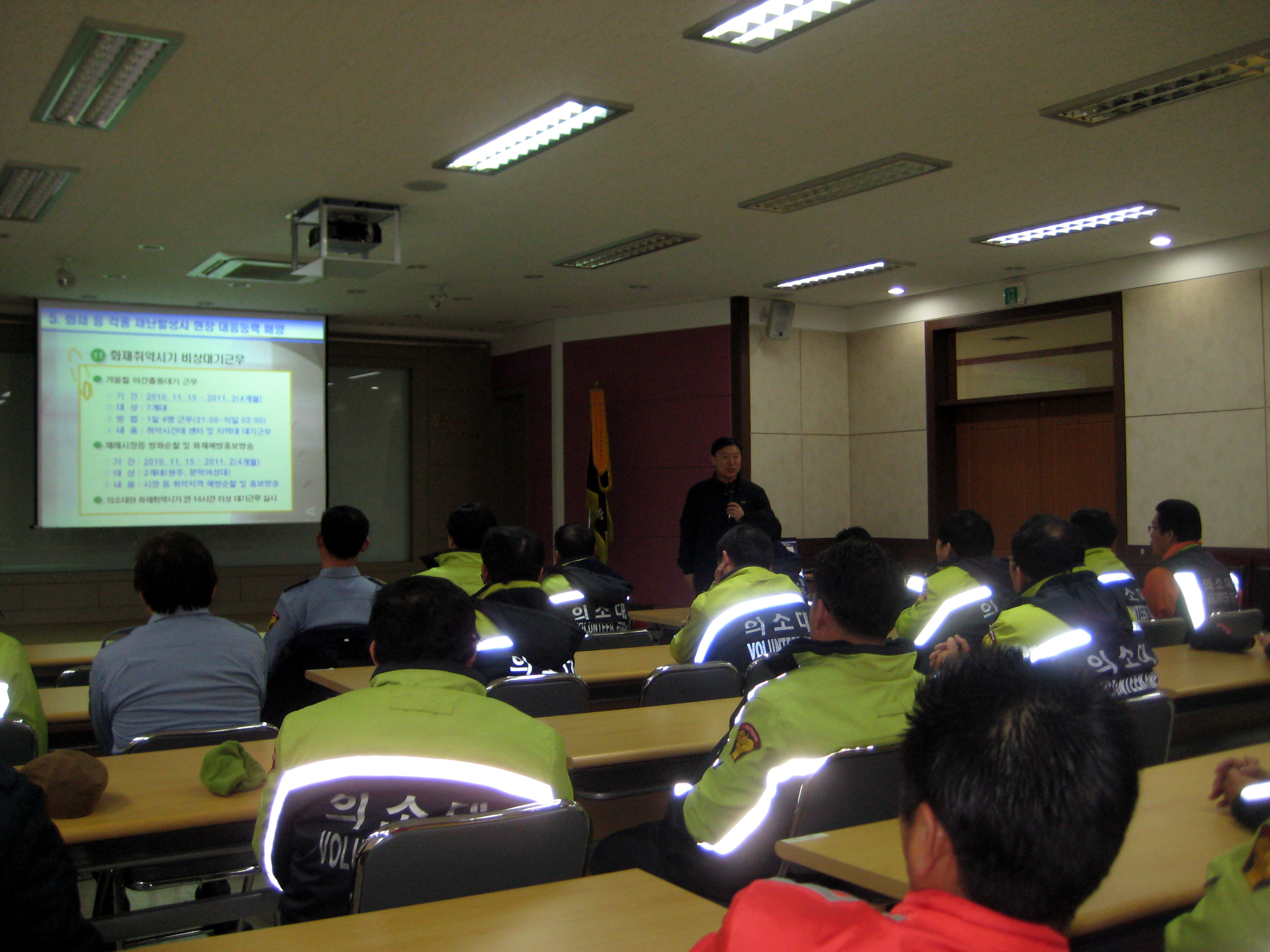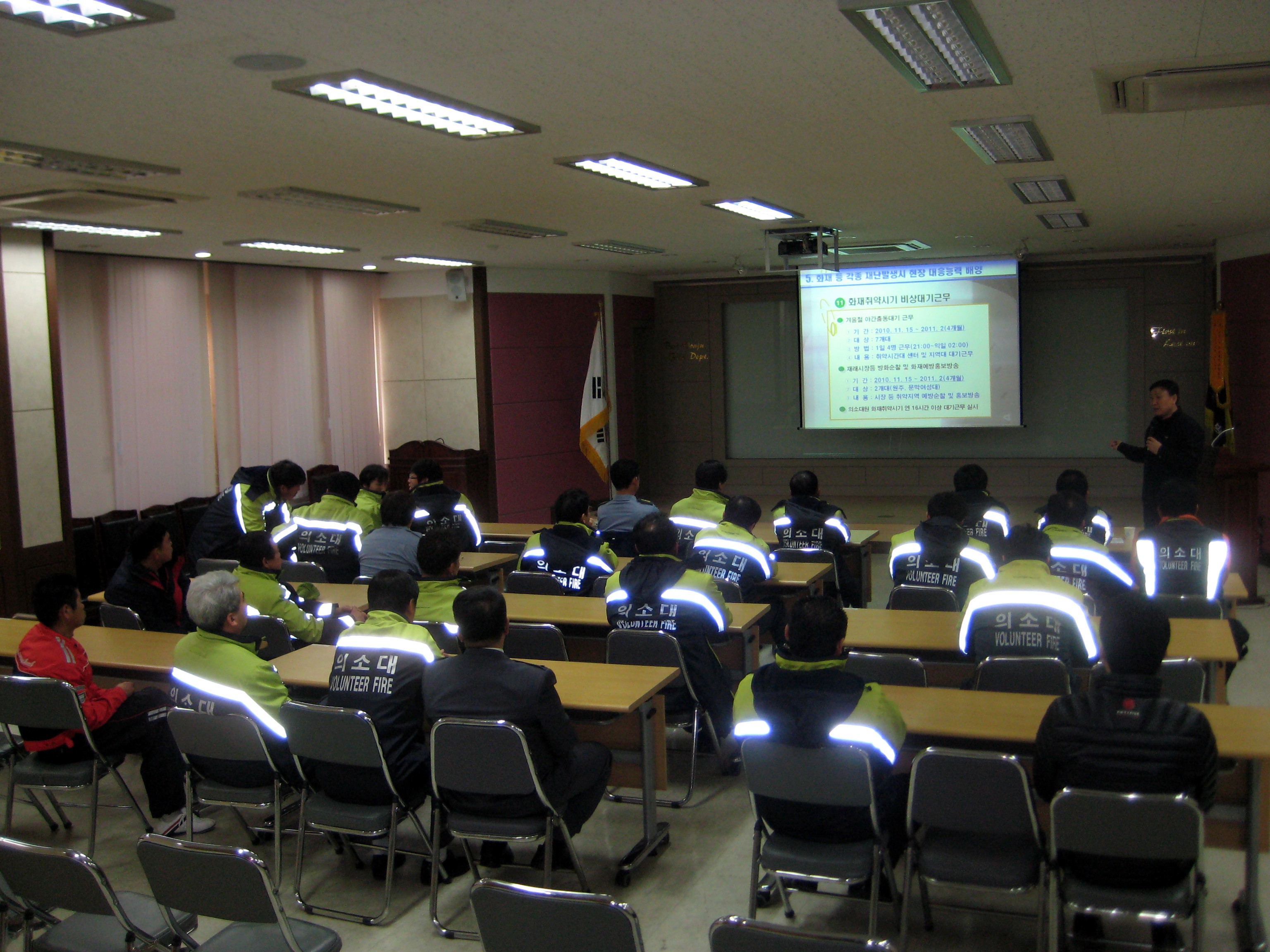 원주소방서(서장. 박창진)는 원주의용소방대(대장 조성일) 2월 정기교육을 실시하였습니다.현원 60명 중 원주의용소방대장 조성일외 36명이 참석하여 2011년 의용소방대 향후계획 교육을 김창현 계장님께서 진행하였습니다. 이후 2010년 정기총회 실시했다.