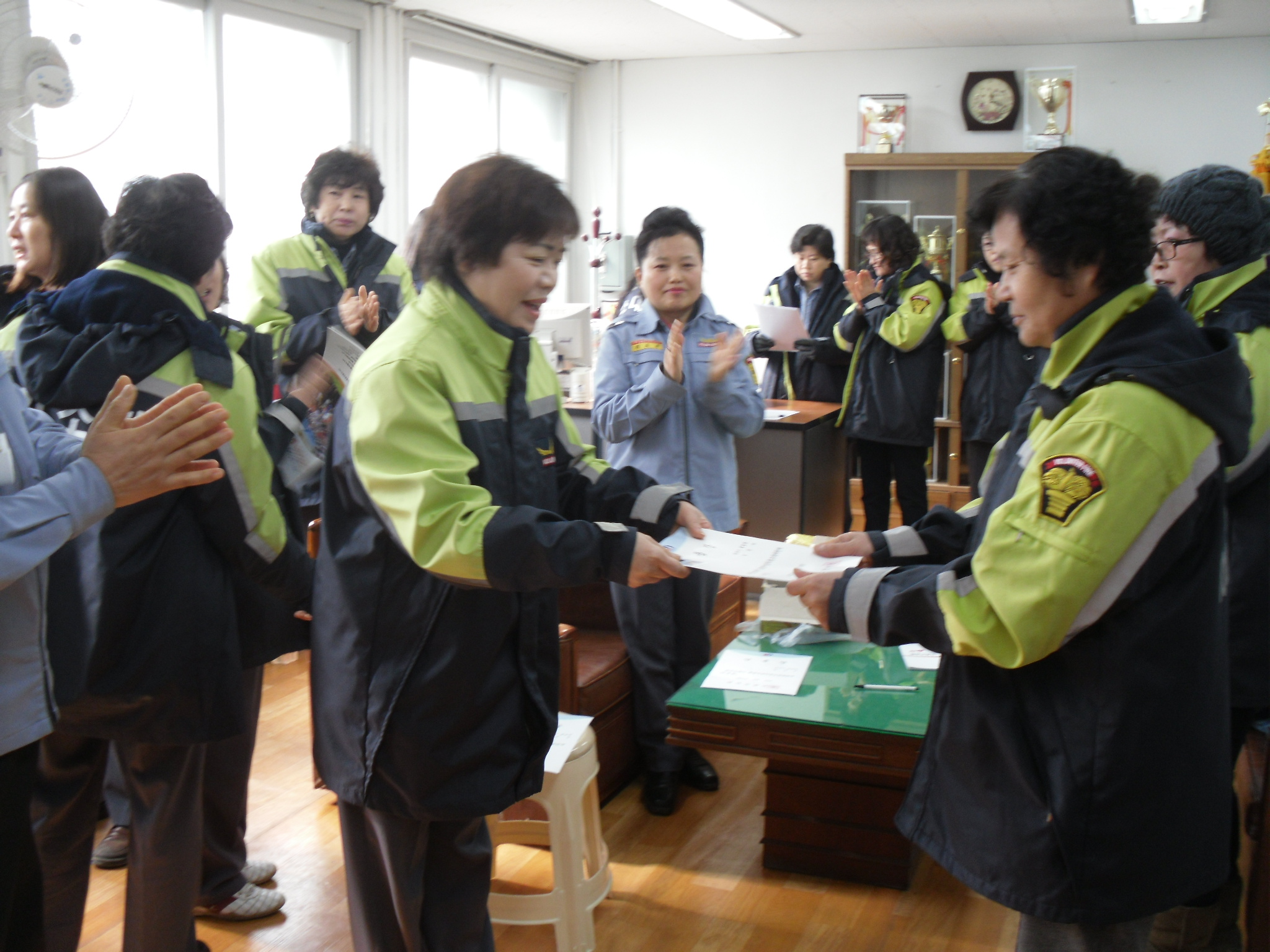 이후 자체교육에서는 대원자녀(위별님) 장학증서 및 장학금 전달과 신입대원 임용장 및 대원증 전달(최해옥, 장순금, 김순자, 전점순대원), 1월~2월 현재 경과보고, 3월 정기교육 일정 및 각 종 사업보고(봉사활동에 대한 계획) 토론의 시간과 1월~2월 입.출금내역에 대한 보고가 있었습니다.