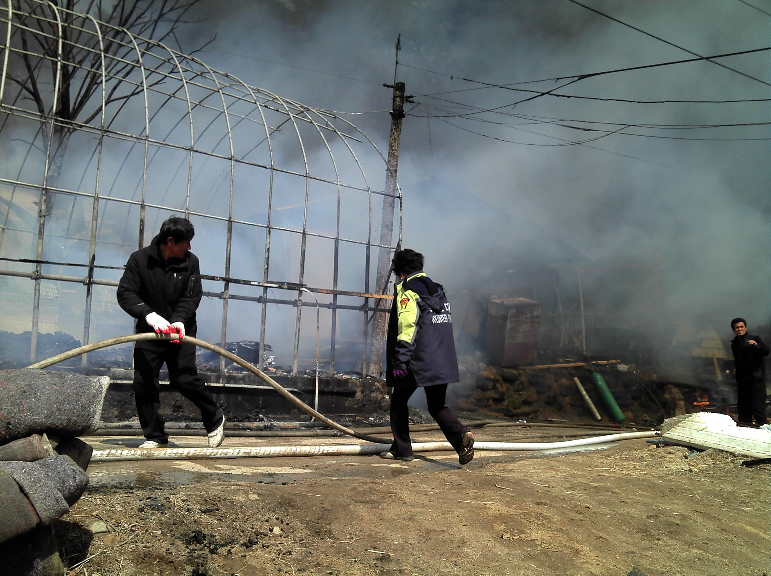 소초여성의용소방대 윤금순 대장 외 15명은 3월 22일 10시30분경 소초면 교황2리 경로당 뒷편 창고화재가 산불로 진행되어 출동하였습니다.