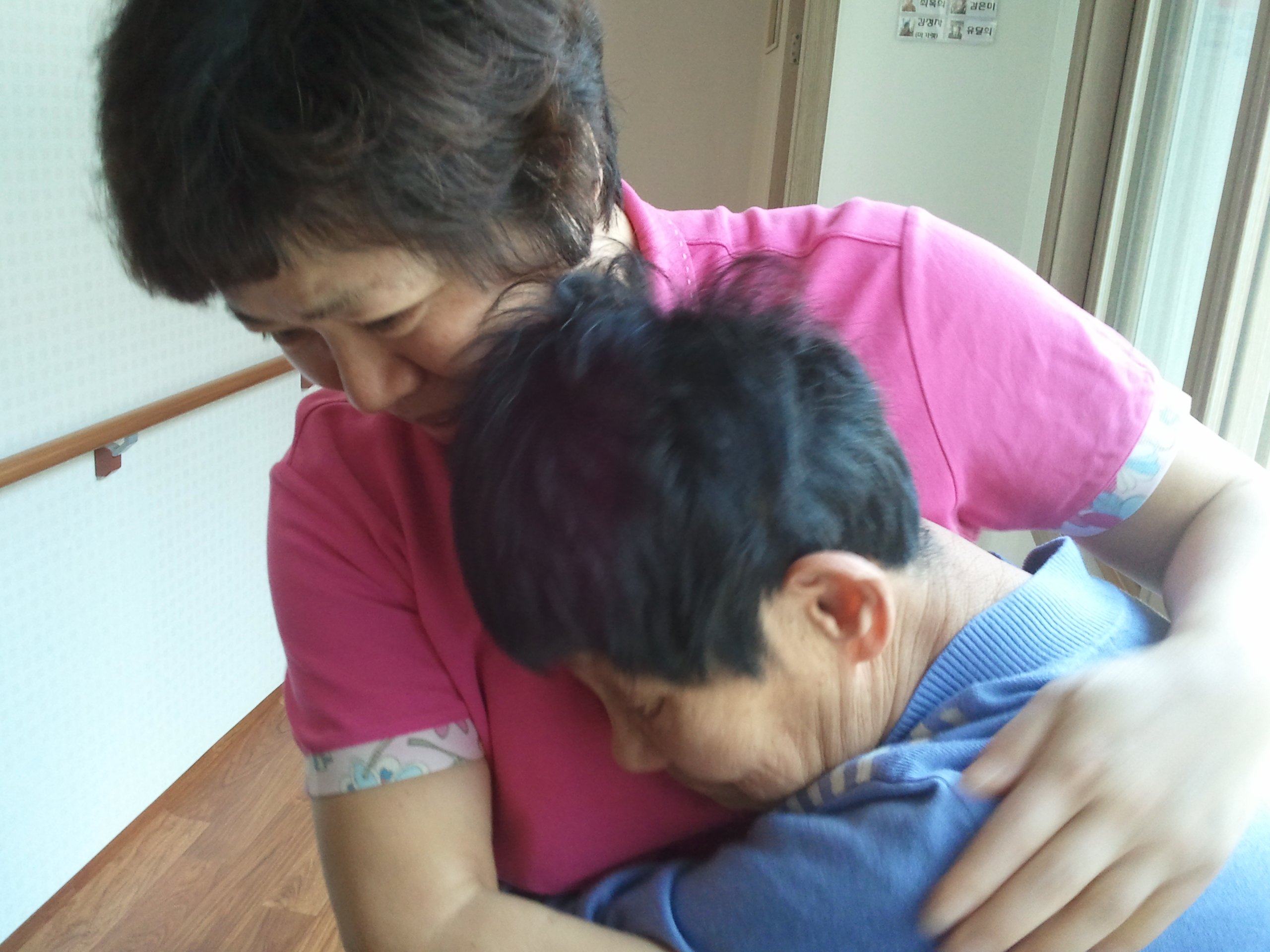 항상 함박웃음으로 맞이해 주시는 언니를 보니 내 얼굴에도 웃음꽃이 한가득 이였어요.8분정도 봉사를 하면 정말 힘들지만, 언니들이 좋아하구 와주어서 고맙다는 말을 들을때면 , 언제 힘들었다는듯이..피로가 싹~풀리네요.