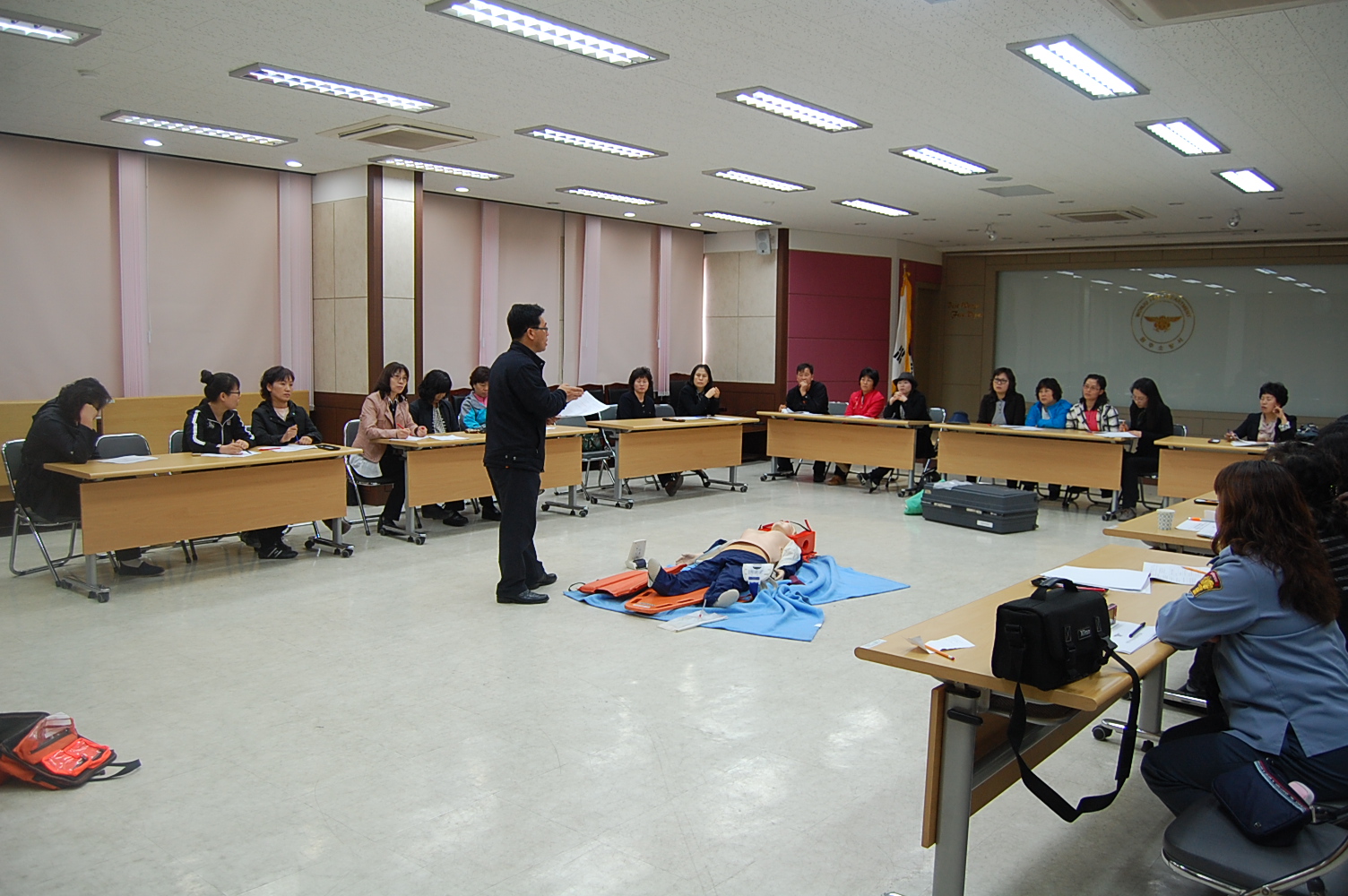 원주소방서(서장. 박창진)는 4.25(월) 10:00-12:00 본서 대회의실에서 제14회 원주시의용소방대연합회 소방기술경연 및 체육대회(5.3 화 10:00-16:00, 원주양궁장) 대비 여성대 응급처치경연대회 경연종목에 대해 설명회를 개최하였습니다.