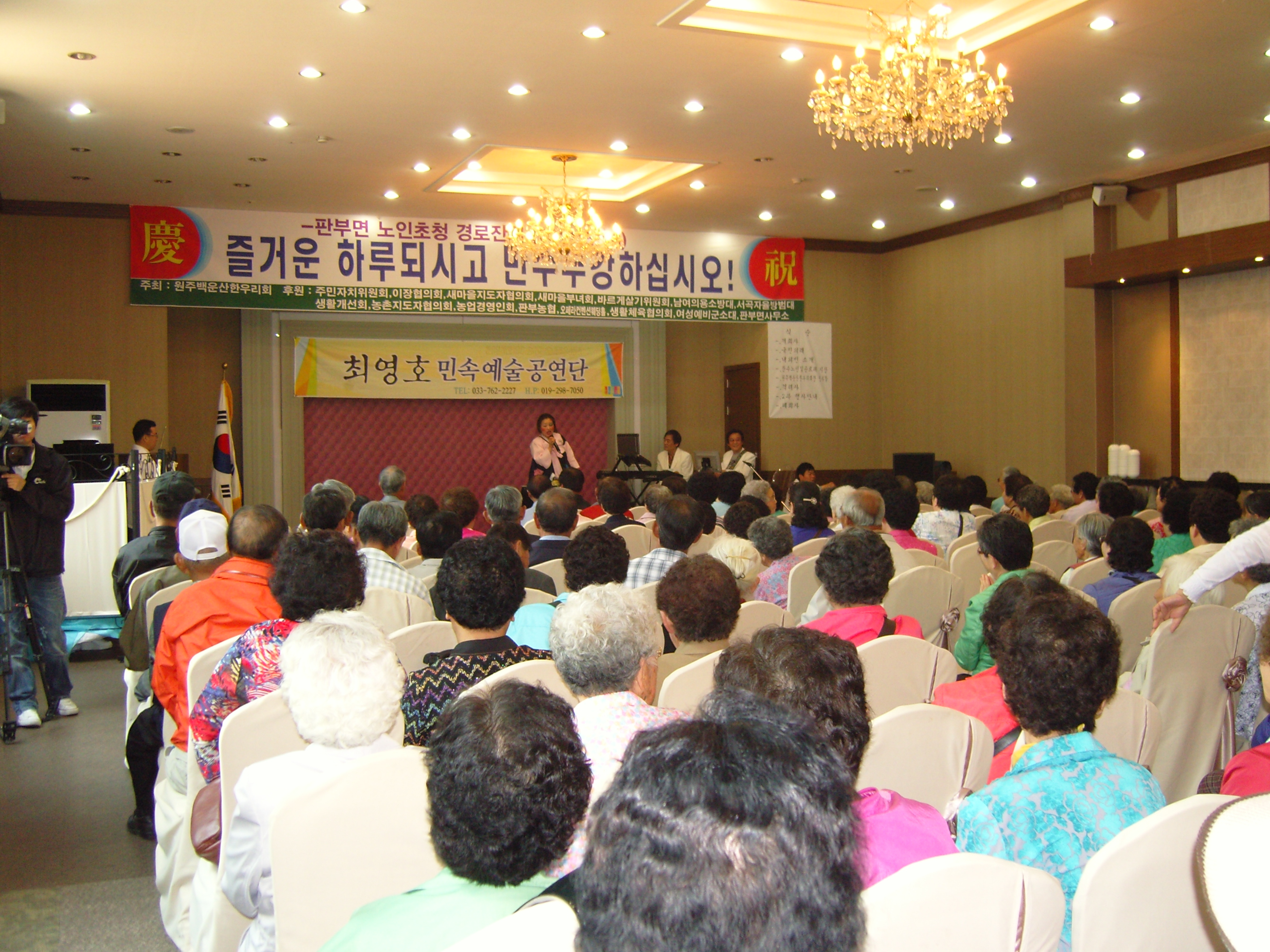 판부여성대 (대장 노순일외 10명) 는 16일 백운산 한우리회가 주최 하는 판부면민 경로잔치에 작은금액(10만원)에 찬조와 행사도우미 활동을 하였습니다.