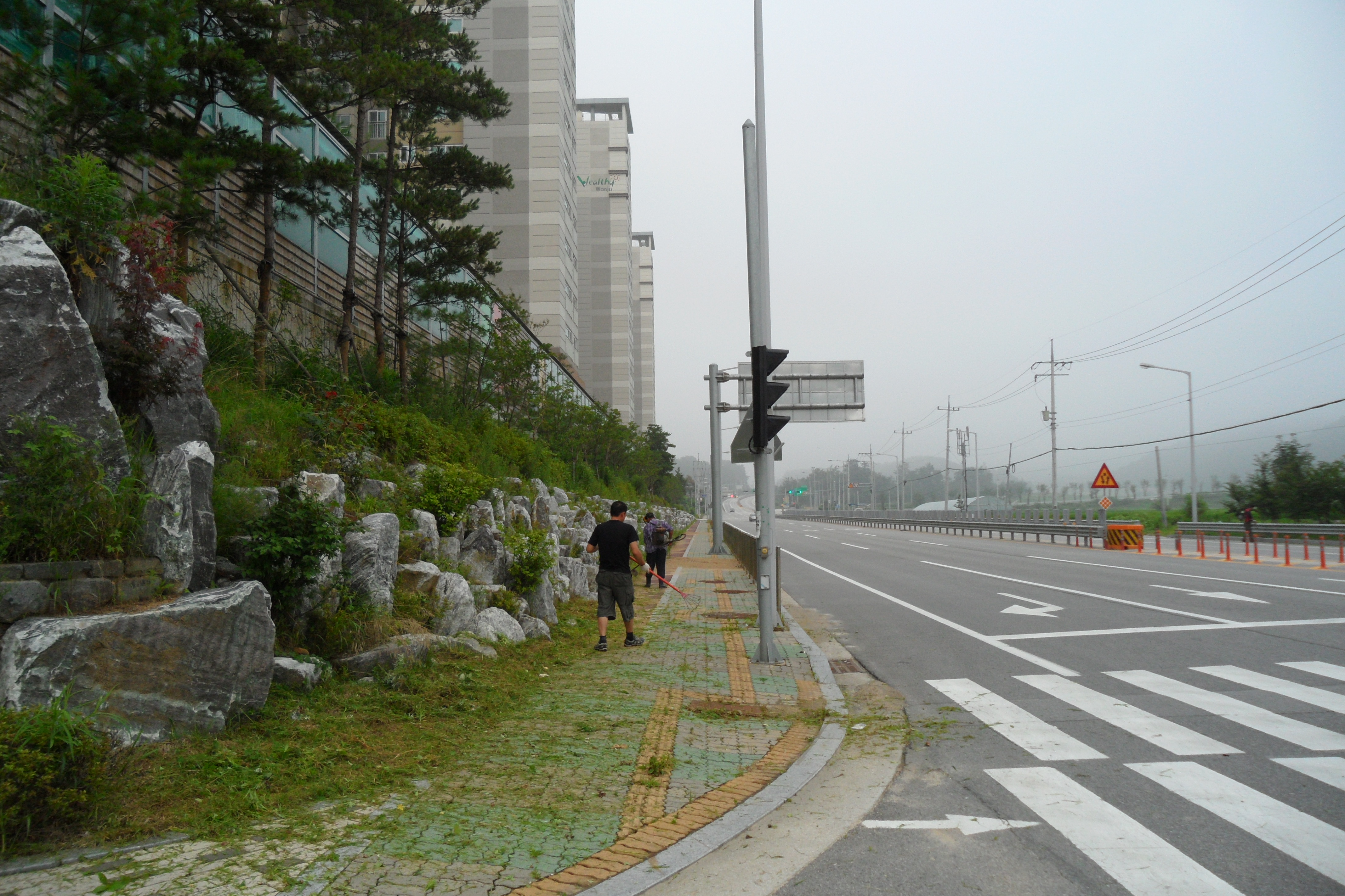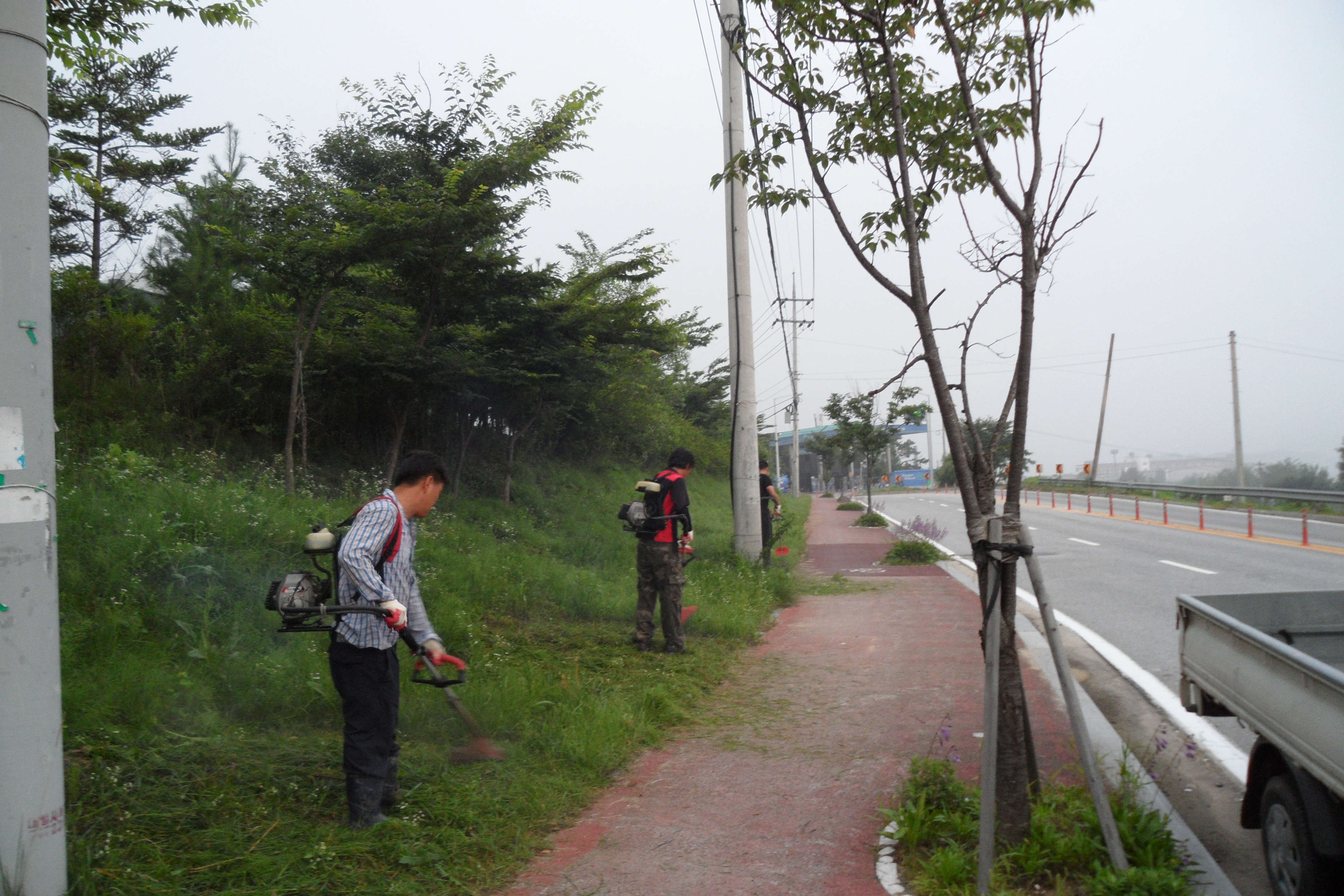 흥업 의용소방대원 (16명) 7월26일 (화) 05;00-08;20 강릉원주 대학정문앞에서 - 밤골 두산(APT.)위 나들목 입구까지 상쾌한 새벽공기를 마시며 도로변 잡초제거및 청소