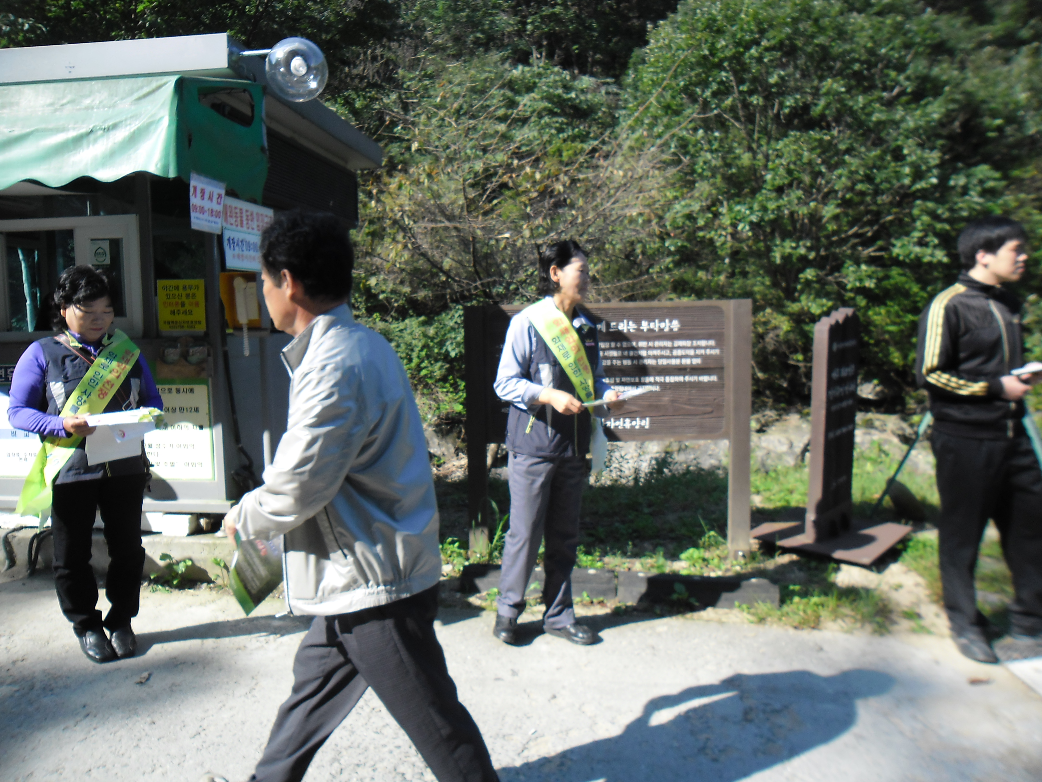 입산통제구역이나 폐쇄된 등산로에 출입하지 말아주시기를 바라며,산행을 할때는 라이터소지나 담배를 피우지 말기를 당부드렸습니다.